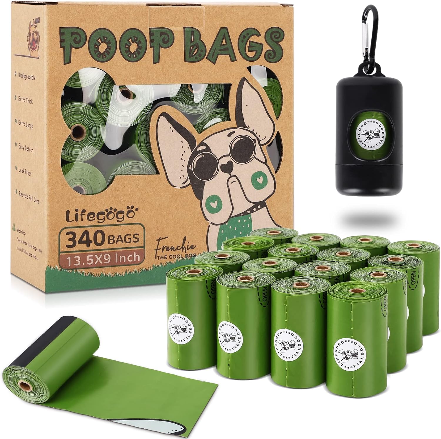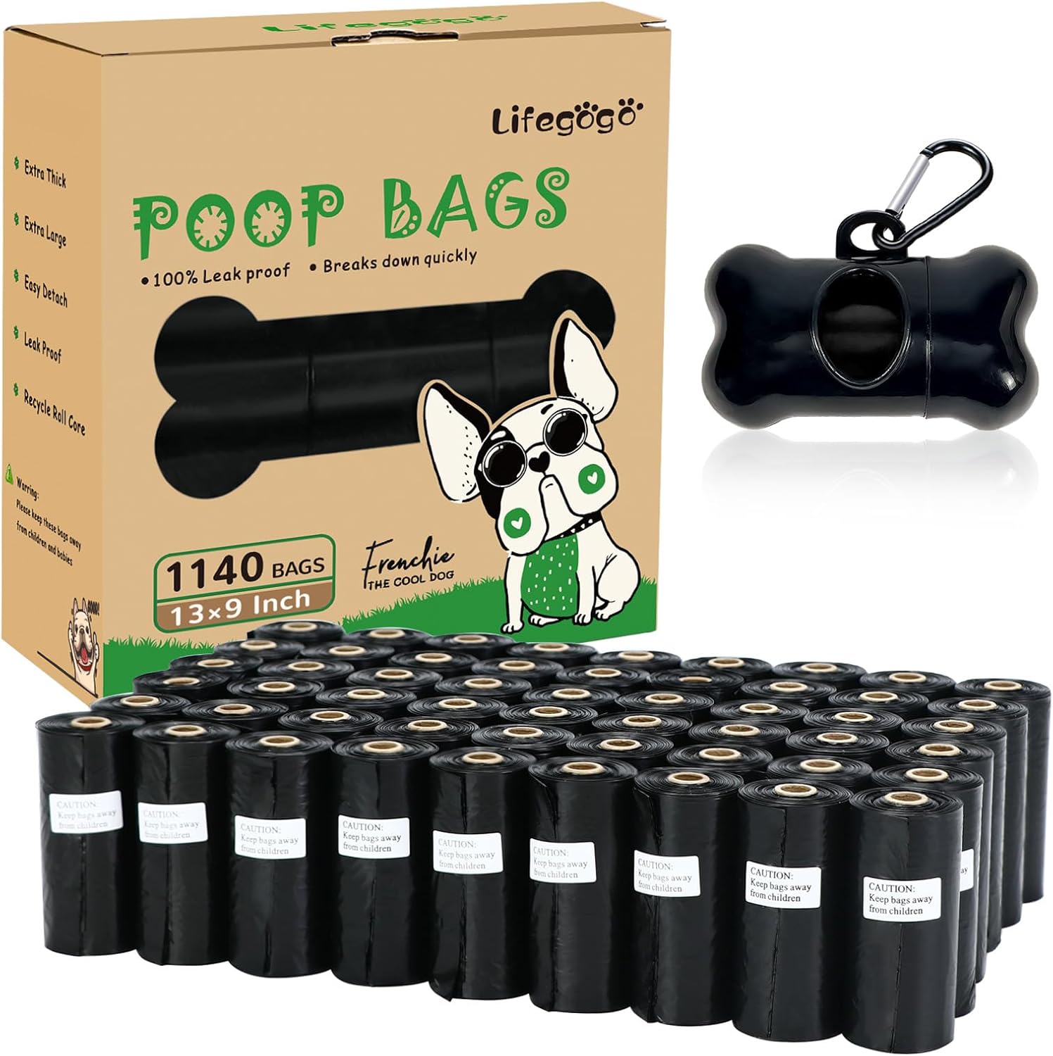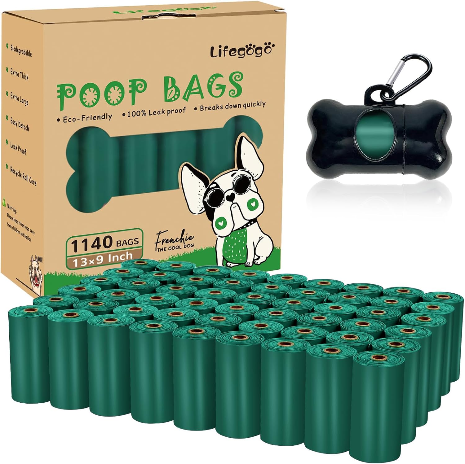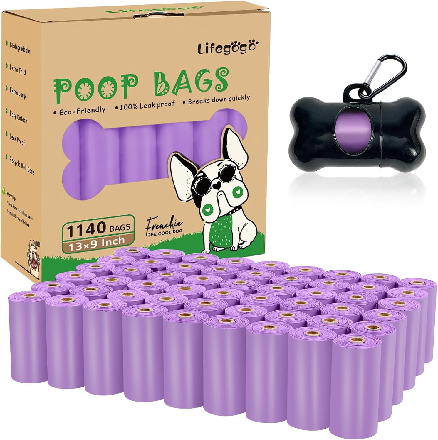 • 【您将收到】 - 您将获得 57 卷,每卷有 20 个便便袋,1140 个狗便袋,可供使用长达 1 年(每天使用 3 个小狗粪便袋)-- 包括 1 个可重复使用的标准狗粪袋分配器。