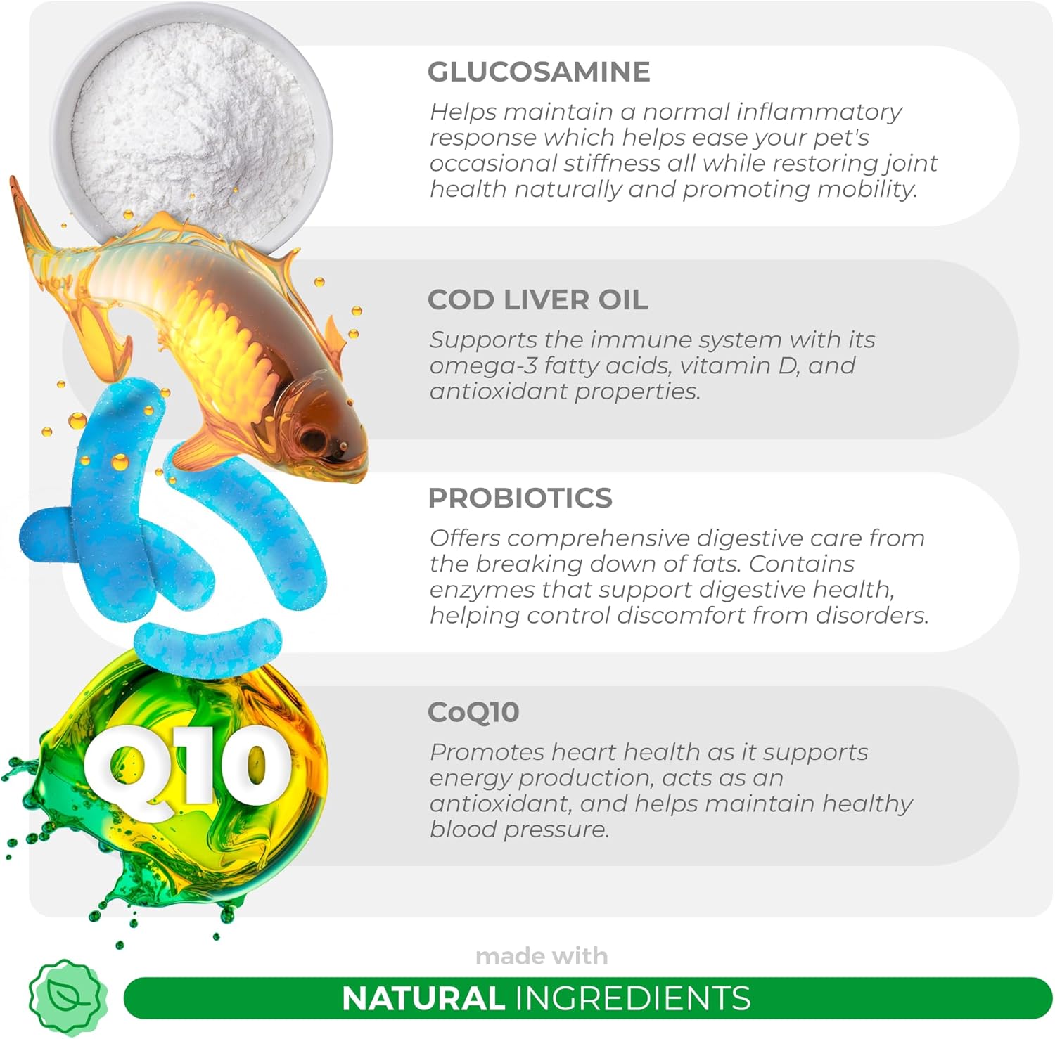 - Veterinarian Formulated - Our supplements are veterinarian formulated and are free from harmful ingredients like Palm Oil, Corn, Soy Derivatives, Synthetic Colors, or Artificial Flavors, prioritizing your pet's well-being.