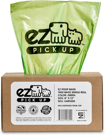 Keep one box in your pantry, garage, car, or anywhere where you may need a bag for cleanup. 1000 pickup bags on a single roll. Bags dispenses from the top opening of the box. Bags separate easily from the top opening! These EZ pickup bags are too big to fit into waste station dispensers, designed to be used straight out of the box only. Also great for dirty diapers and cat litter.