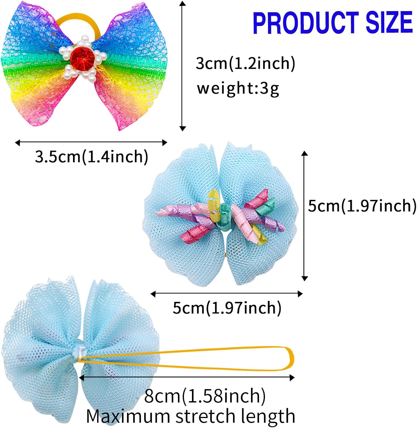 - Multiple Material: The hair bows for dogs made high quality ribbon lace, soft and durable, dog hair bows with rubber bands, even when the dog is running or jumping, they can prevent the hair from blocking the dog's vision, rubber bands can be firmly fixed, not easy to fall off, can be comfortably stretched.