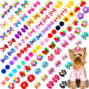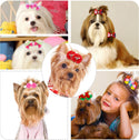 - Bows for Dogs: Amazing! you will get 100pcs rhinestone/pearls/flower/ball/ribbons/lace small dog hair bows, the color assortment and there’s two of each, dog bows with rubber bands can make them adorable and chic, your cur pet dog wearing dog bows will stand out, charming and eye-catching. Which is suitable for most small and middle sized pet dog hair bows.