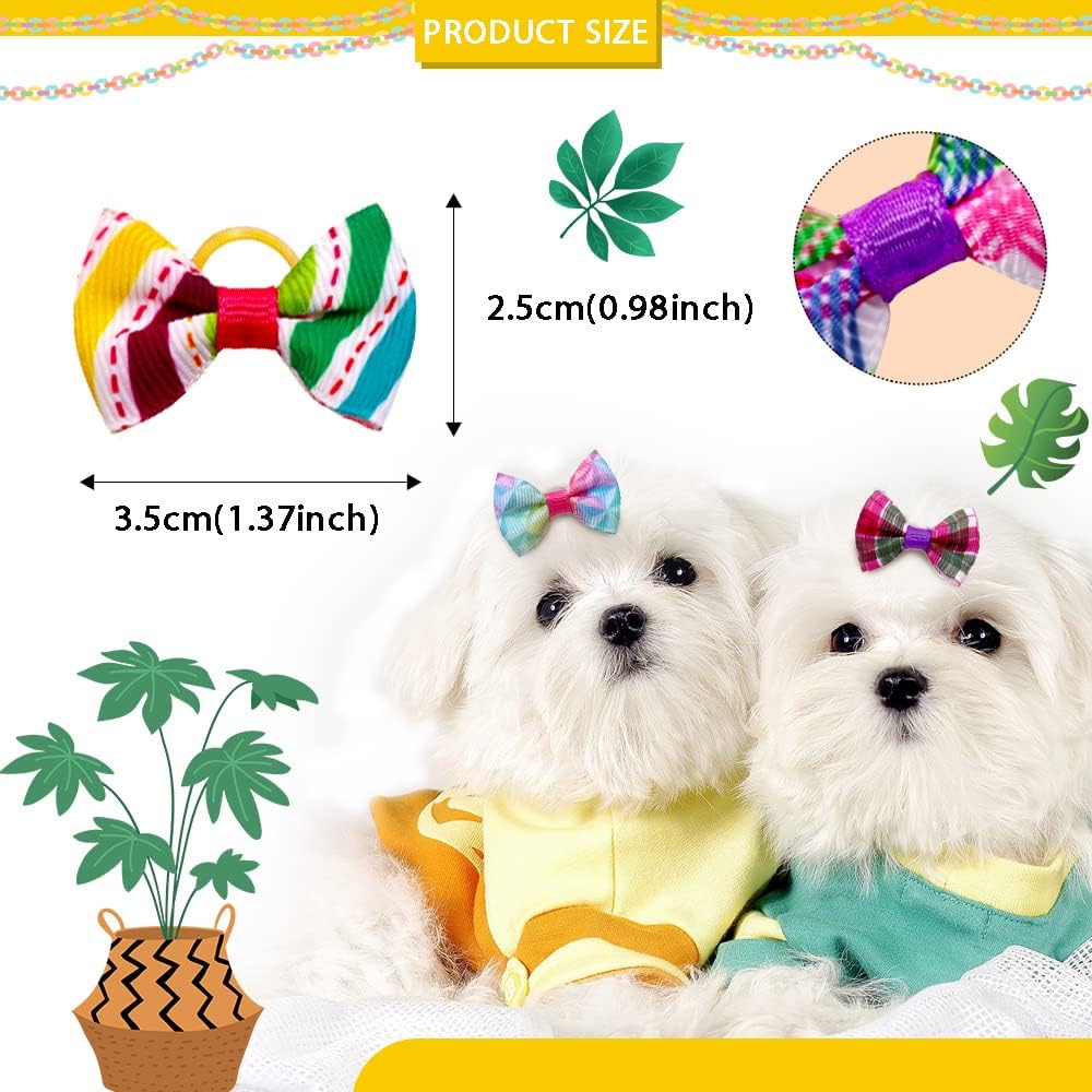 - High Material: The dog hair bows for small dogs made high quality ribbon, durable small dog hair bows with rubber bands, even when the dog is running or jumping, they can prevent the hair from blocking the dog's vision, rubber bands can be firmly fixed, not easy to fall off, can be comfortably stretched.