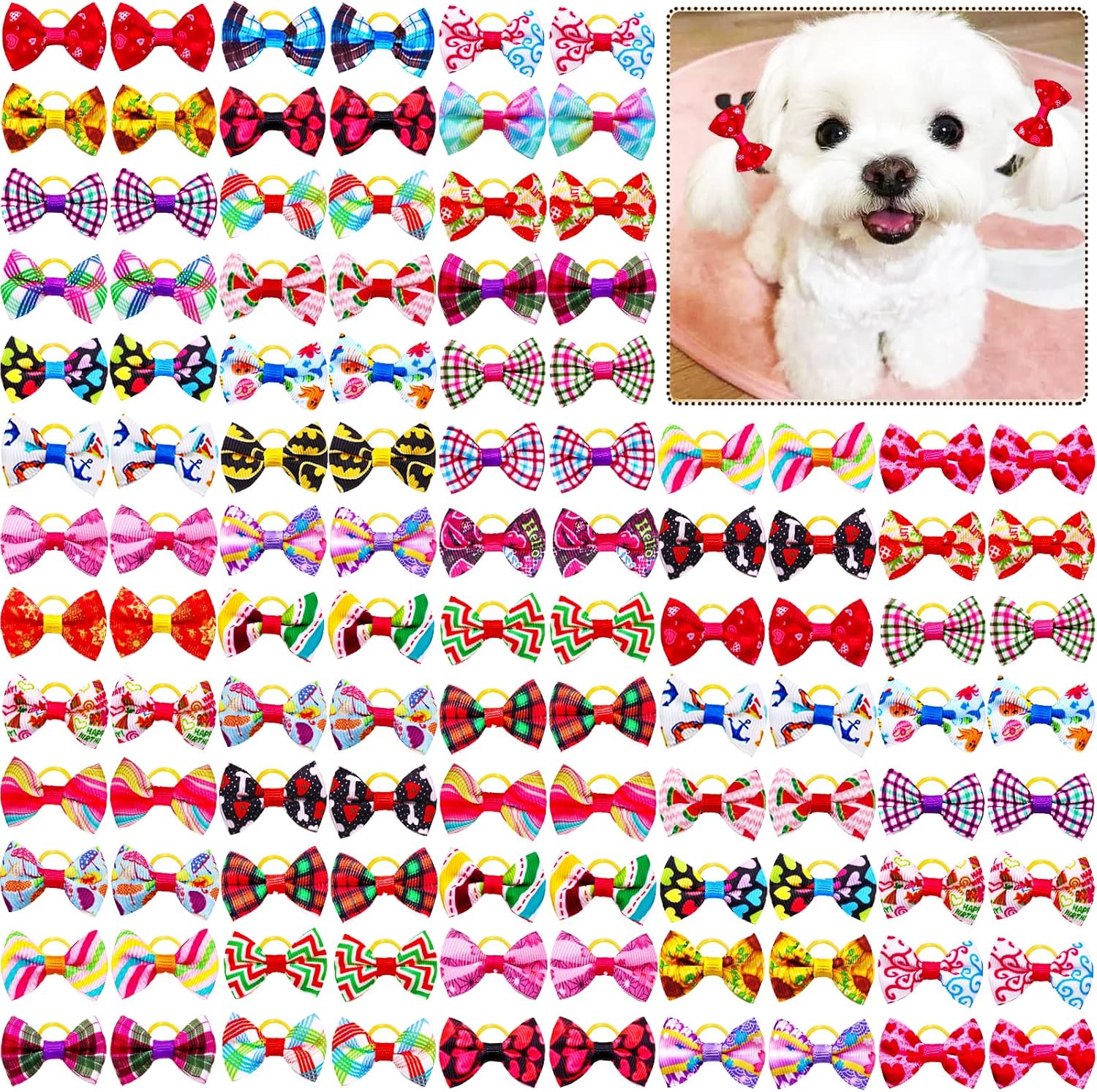 - Dog Bows: As a professional pet groomer and dog owner, always on the lookout for different dog hair bows, These are great for your pet dog. You will get 100pcs/50pairs mix varies colors bows for dogs, dog bow can make them adorable, your cur pet wearing puppy bows will stand out, charming and eye-catching.