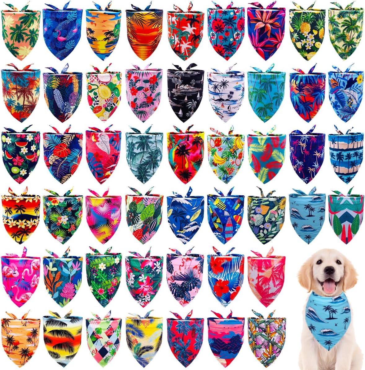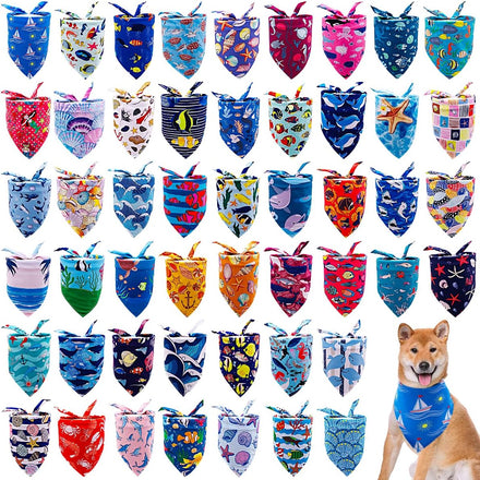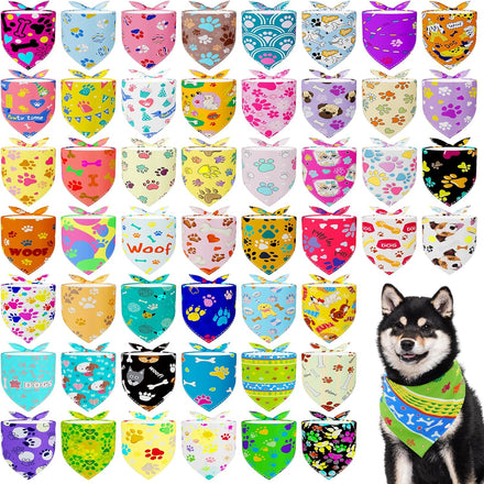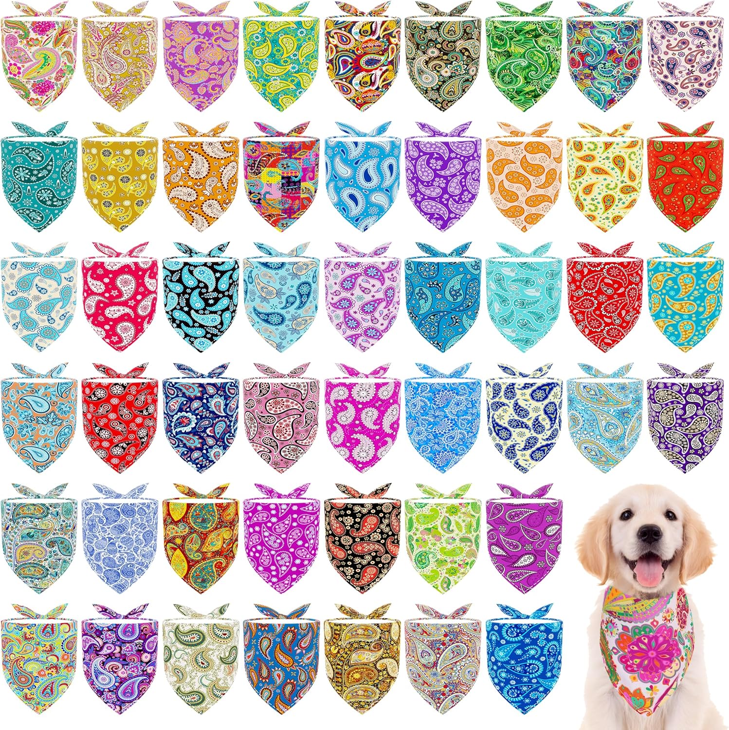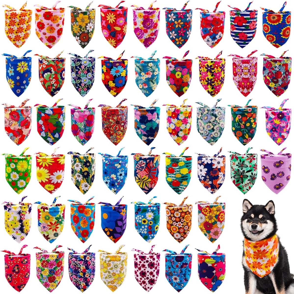 1.GOOD QUALITY MATERIAL : Small dogs bandanas scarves are made of 100% durable cotton yarns, machine wash and dry available.Is is easy to rinse clean.It is soft and comfortable, giving pets a better wearing experience 2.PROPER SIZE : the size is approx. 62*44cm/24.4*17.3inches, fits for small and medium dogs . Please measure the neckline of your cutie and leave room to tie knot. 3.PACKAGE : 100pcs, 40 different styles as the picture, A lot of colors pink blue variety casual random prints pattern are suitable for boys and girls dogs.You can change the look of your puppy every day. 4.NEW DESIGN : Pet bandanas suitable for dogs,miniature poodle,maltipoo,English bulldog,dachshund,wiener dog,puppy, doggy, cat, kitty, kitten, small and medium pets animals. The pet dog bandanas bibs Scarfs can be worn on the front chest or back, both sides are available to wear. 5.WIDE USAGE : Suit for everyday wear, photo shot, parties, weddings,excursion and picnic .Let your dog fashionable and cute in every occasions, a best gift to your pet!