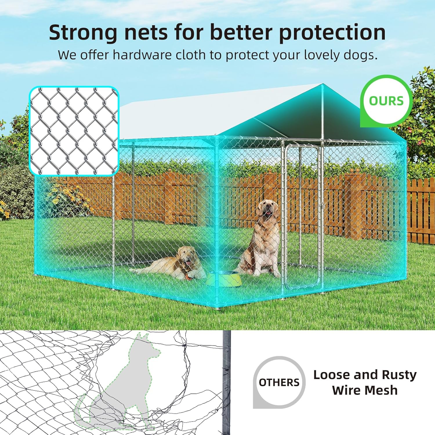 Detailed Installation Instructions: Size:10x10x7ft; Our dog kennel outside comes with an upgraded user manual and detailed numbered fittings, easy and quick to assemble, saving you time and energy.Easy to clean to ensure your pet stays healthy and comfortable