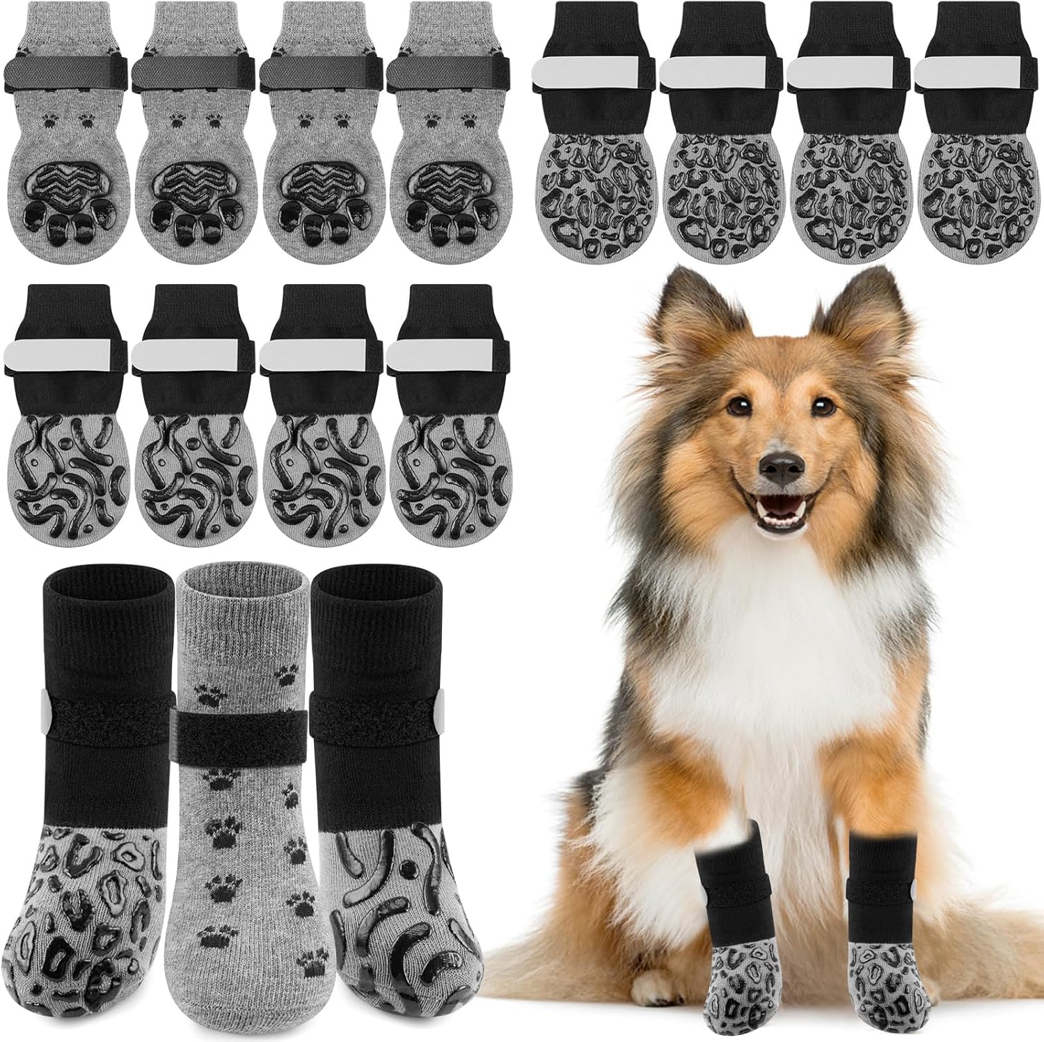 - Multi-style Set: you will get 12 dog socks in three fashionable styles: caterpillar, dog paw and leopard print; These silent socks are cute, practical and warm, suitable for furry children to wear indoors and outdoors