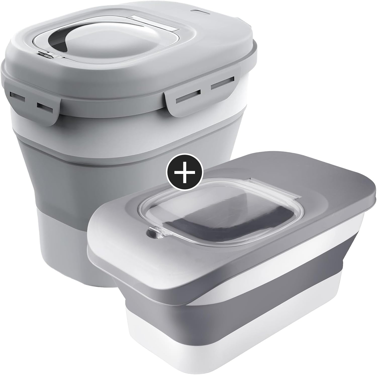 - PRODUCT DIMENSION: Our dog food storage can be folded into two sizes. Unfolded size: 29 QT, 17’’L x 9’’W x 12’’ H, up to 23 lbs; Folded size: 9 QT, 17’’L x 9’’W x 5.5’’ H, up to 7 lbs
