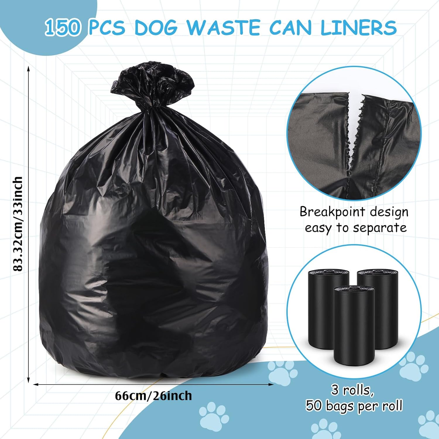 - Quality Material: these dog can liner bags are created with quality plastic that can hold up to 88 pounds of feces; No need to worry about leakage or breakage, whether you're using them as dog can liner bags or dog waste Bags