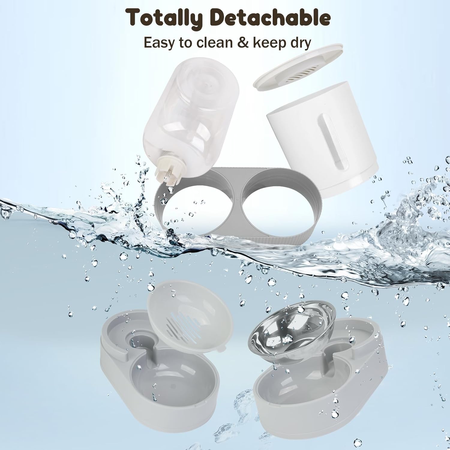 360°Freely Rotation Design - The cat water dispenser and food feeder are adjustable.