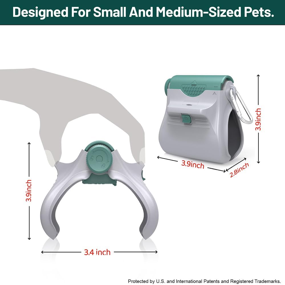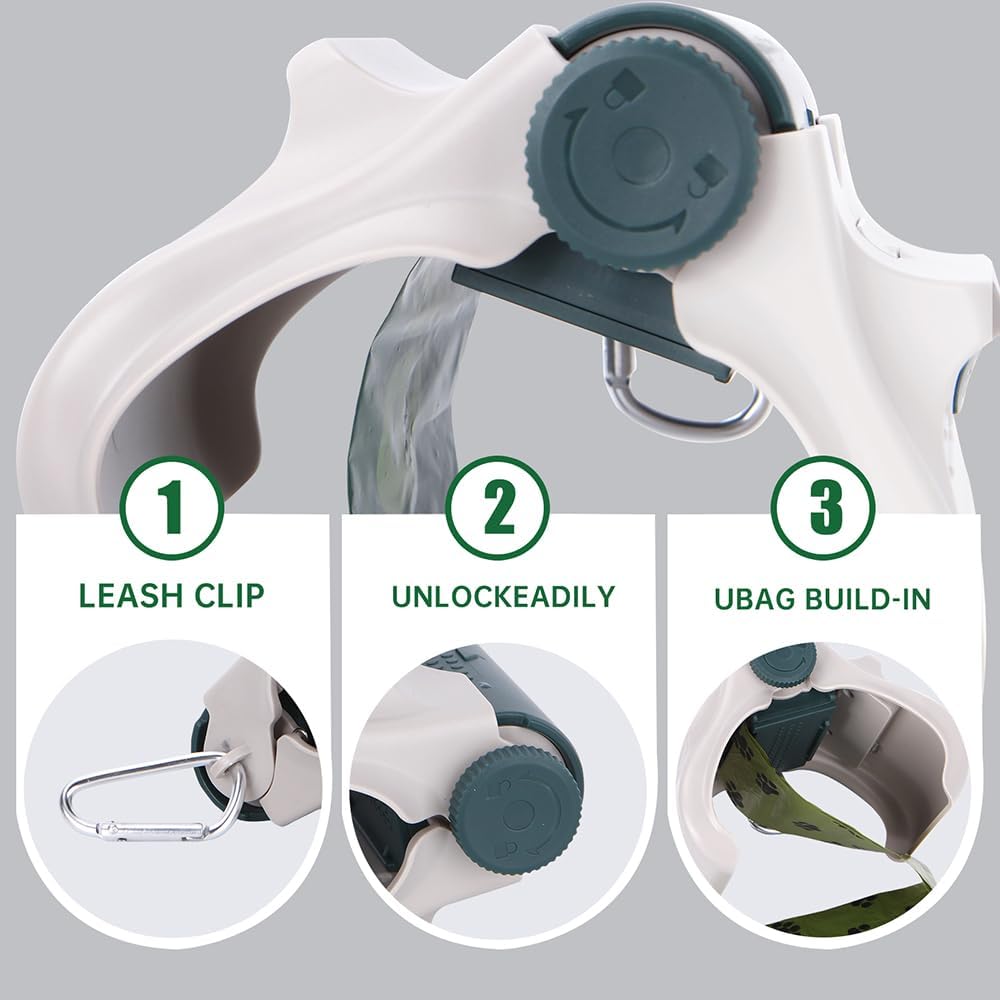 - Ultra-portabl: Weighs less than 0.25 lbs of this poop scooper, excellent rotating unlocking device design can make it more compact and portable. Sturdy carabiner easily attaches leashes, backpacks, or belt loops for hassle-free carrying until you can dispose of the poop bag in the trash.