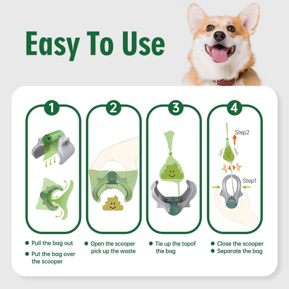 - No mess, no fuss: Quick and simple bag setup with bag holder on top of the pooper scooper with bag attachment, just simply pull the bag and wrap the scooper to start cleaning immediately. The pop bag dispenser compatible with most standard dog poop bags brand.
