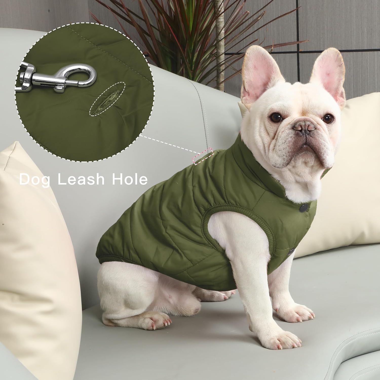 2 Layers Fleece Lined Warm Dog Jacket for Puppy Winter Cold Weather,Soft Windproof Small Dog Coat,Green M