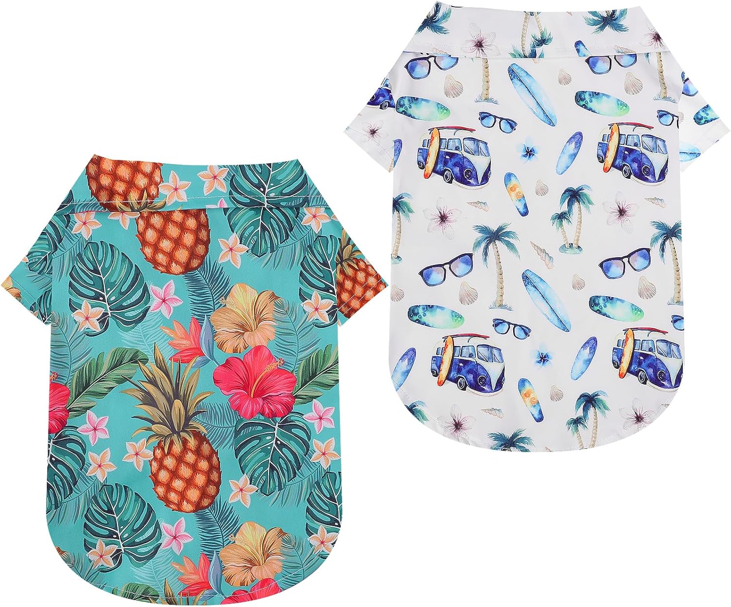- Summer Hawaiian theme: the Hawaiian beach dog shirts adopt summer Hawaiian themed elements like colorful floral print, coconut tree, pineapple, etc., which looks cool and trendy, catering to the Hawaiian atmosphere and making the pet t-shirts full of tropical flavor.