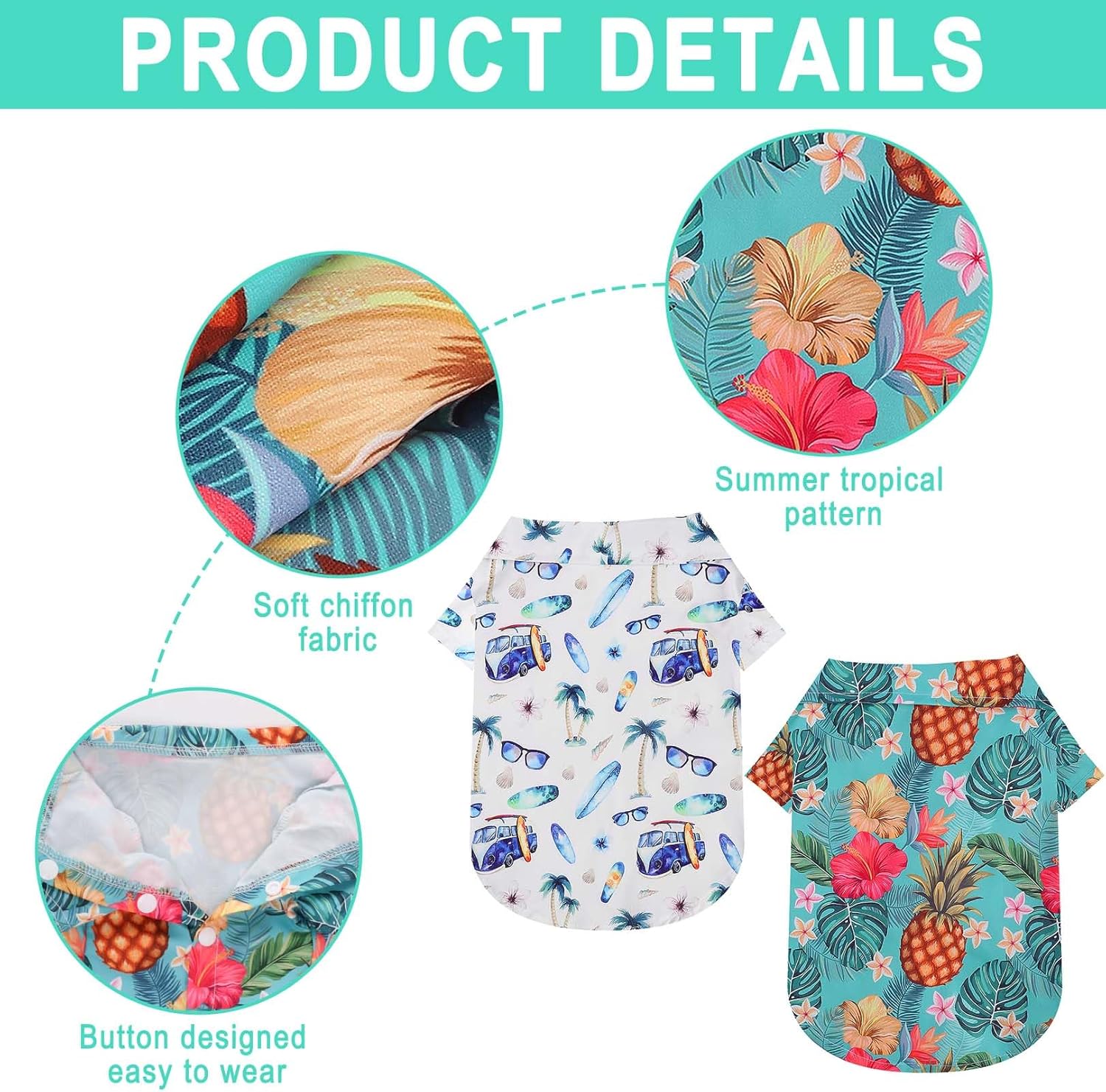 - Easy Wearing: the Hawaiian pet dog clothes designed with lapel and button closure, which is easy for your dogs to put on and take off, reducing the discomfort of dressing and undressing, making your dogs willing to accept the Hawaiian pet shirts.