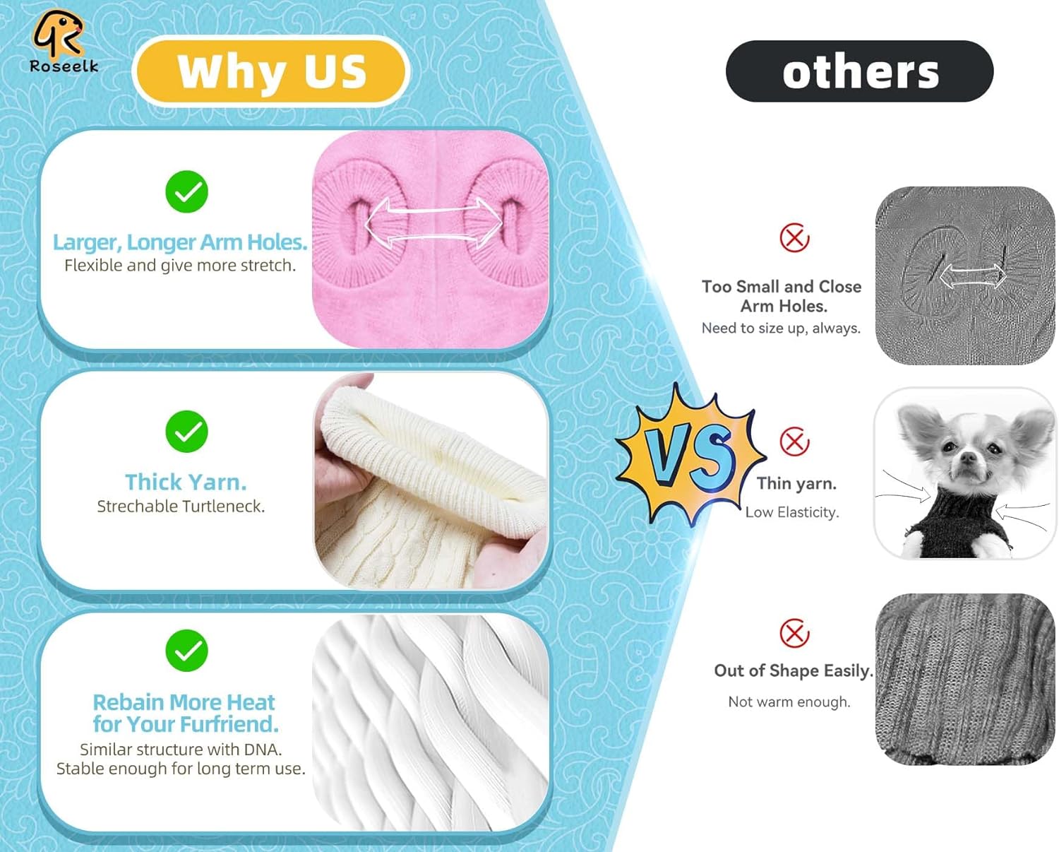 • FLUFFY FEELING: This knit coat is doggy friendly with turtleneck pullover design that can fully wrap your pet's neck, chest and belly snugly