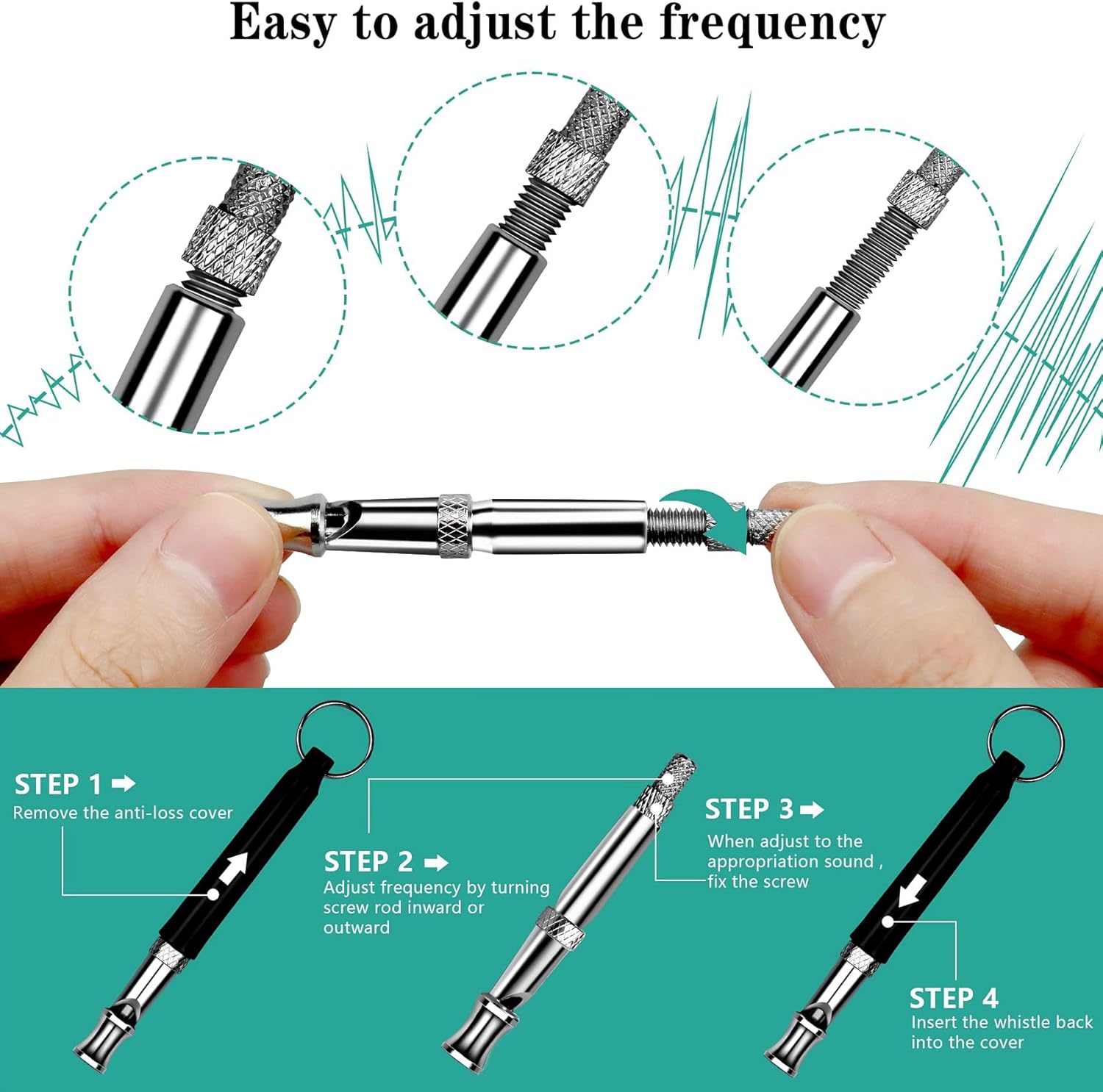 【Adjusable Frequencies】: Different dogs respond to different frequencies. Our dog training whistle has a nut and screw that would adjust the frequency when turned. Notice your dog's reaction to each setting until your dog exhibits the strongest reaction