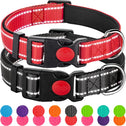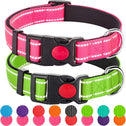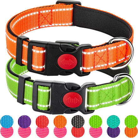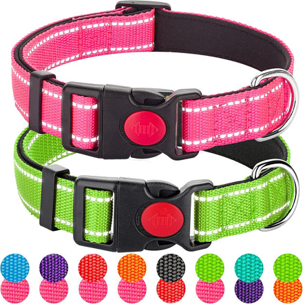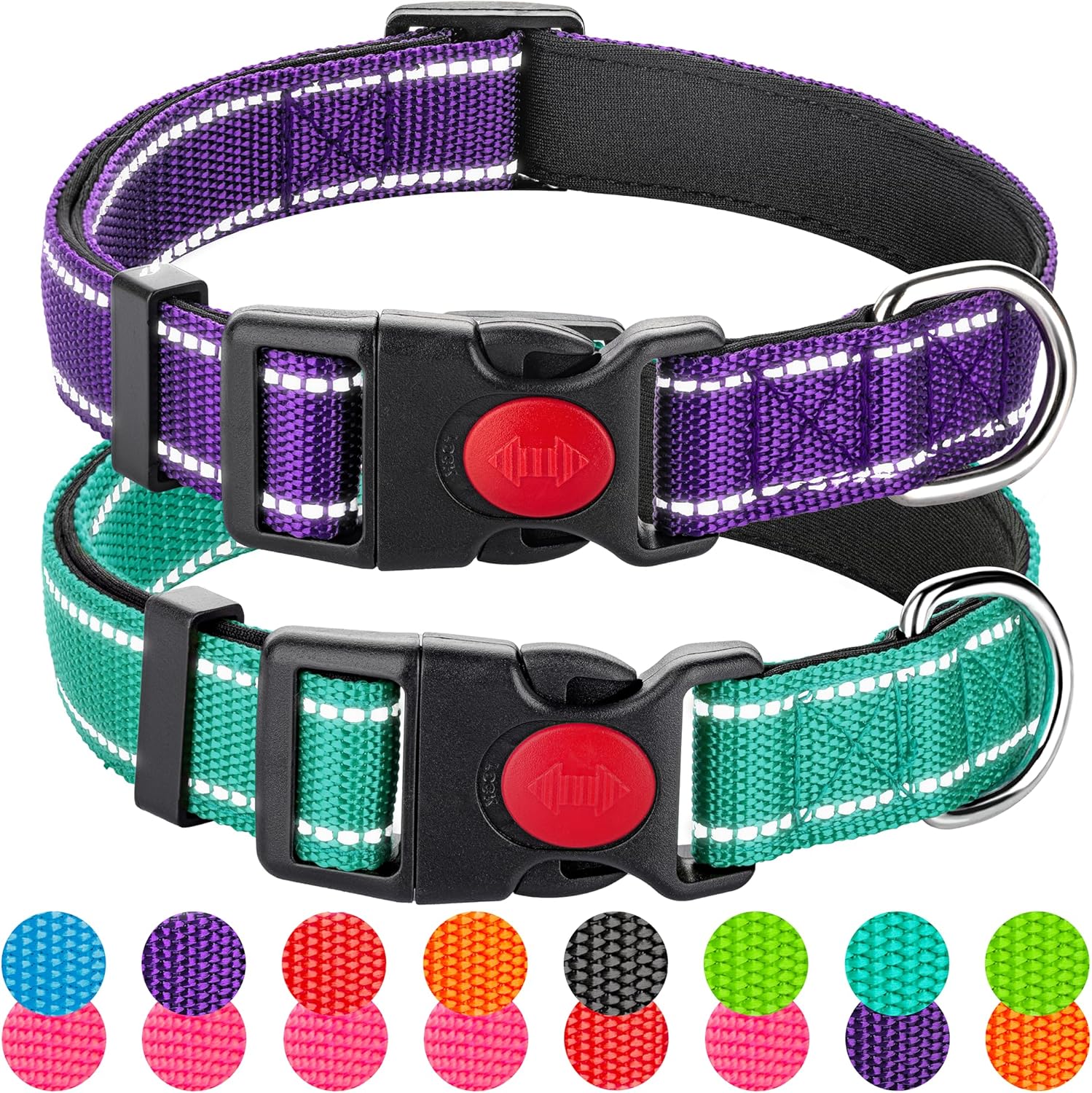 - Safty Buckle Our reflective dog collars are high-quality, quick-release safety buckles for effortless length adjustment and easy on/off. Our buckle dog collar provides a comfortable fit and One-touch locking to prevent breaking free of the basic dog collar.