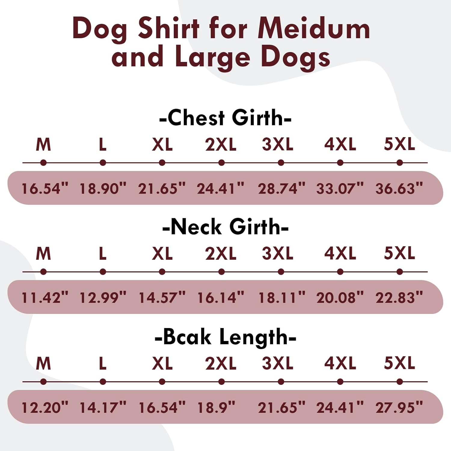 - Size 4XL: Chest Girth33.1inch /84cm, Neck Girth 20.1inch /51cm, Back Girth 24.4inch / 62cm. This dog shirt is for medium and large dogs, please measure your dogs and check the size chart before ordering