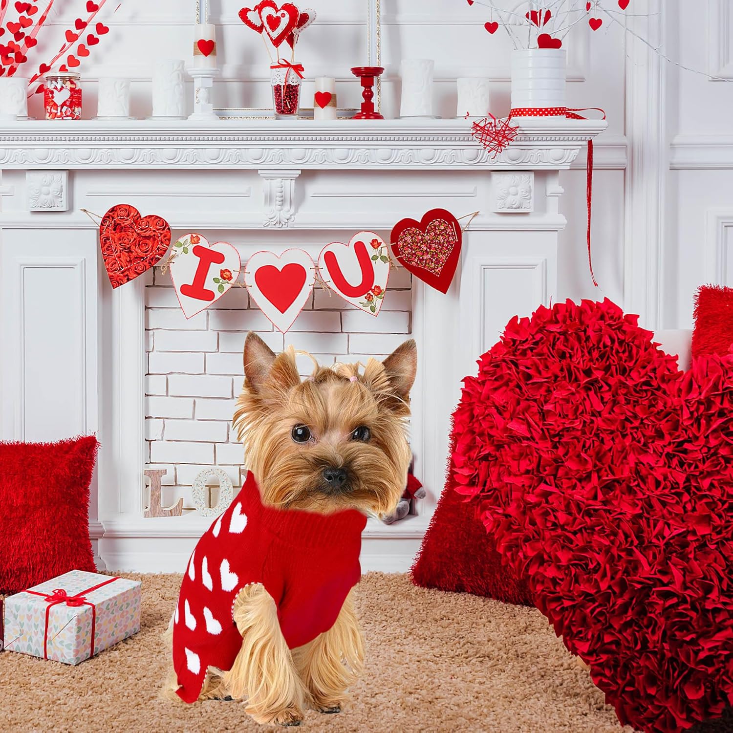 - Premium Acrylic Fiber: The Valentine’s Day dog sweaters are made of high-quality acrylic fiber materials, which are super soft and warm for your pet to enjoy Valentine’s Day with you.