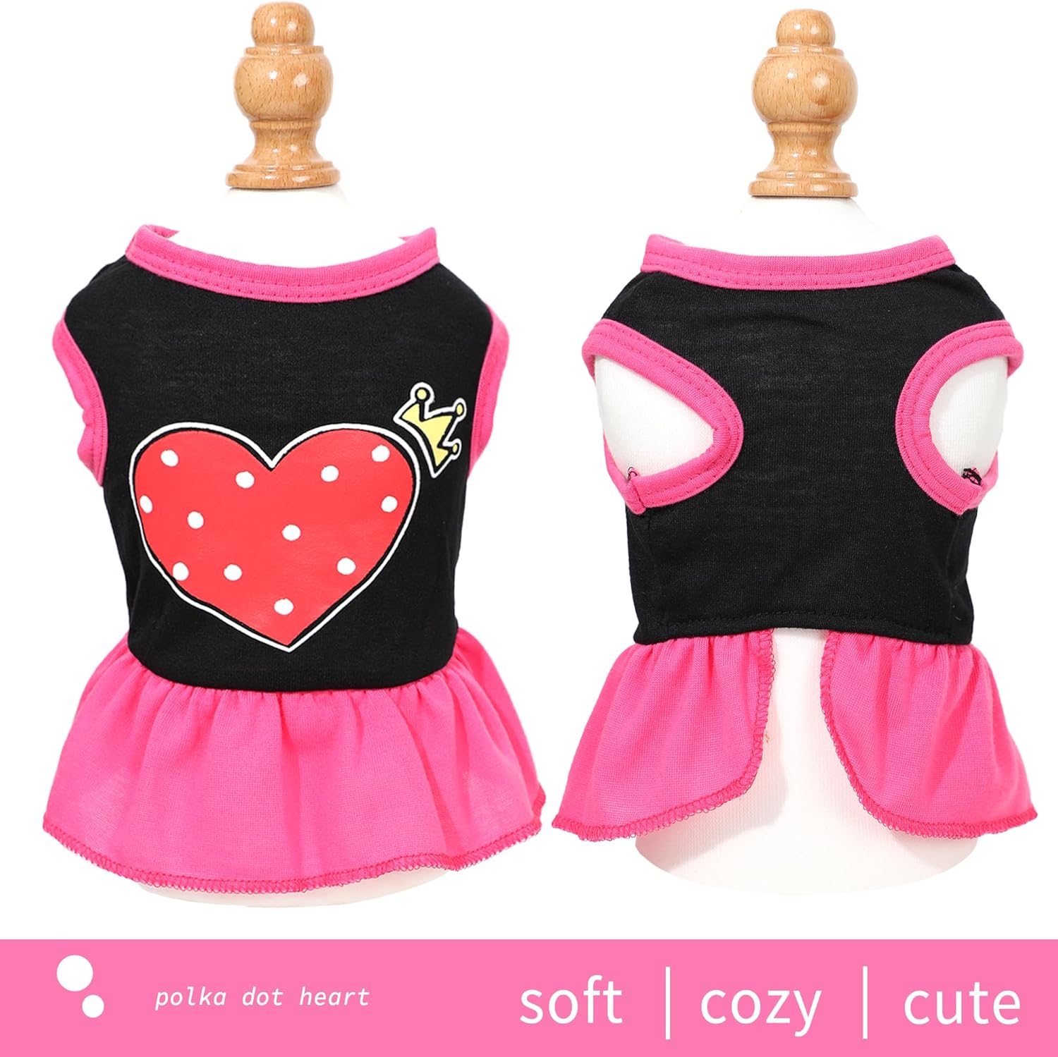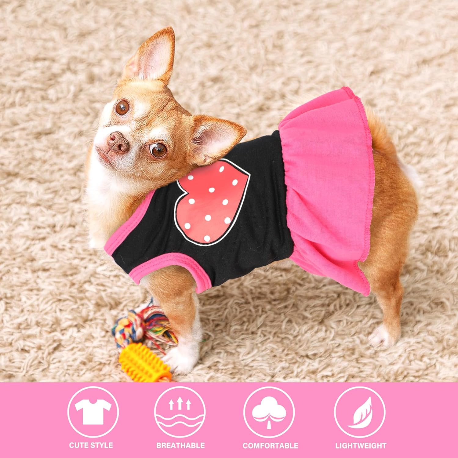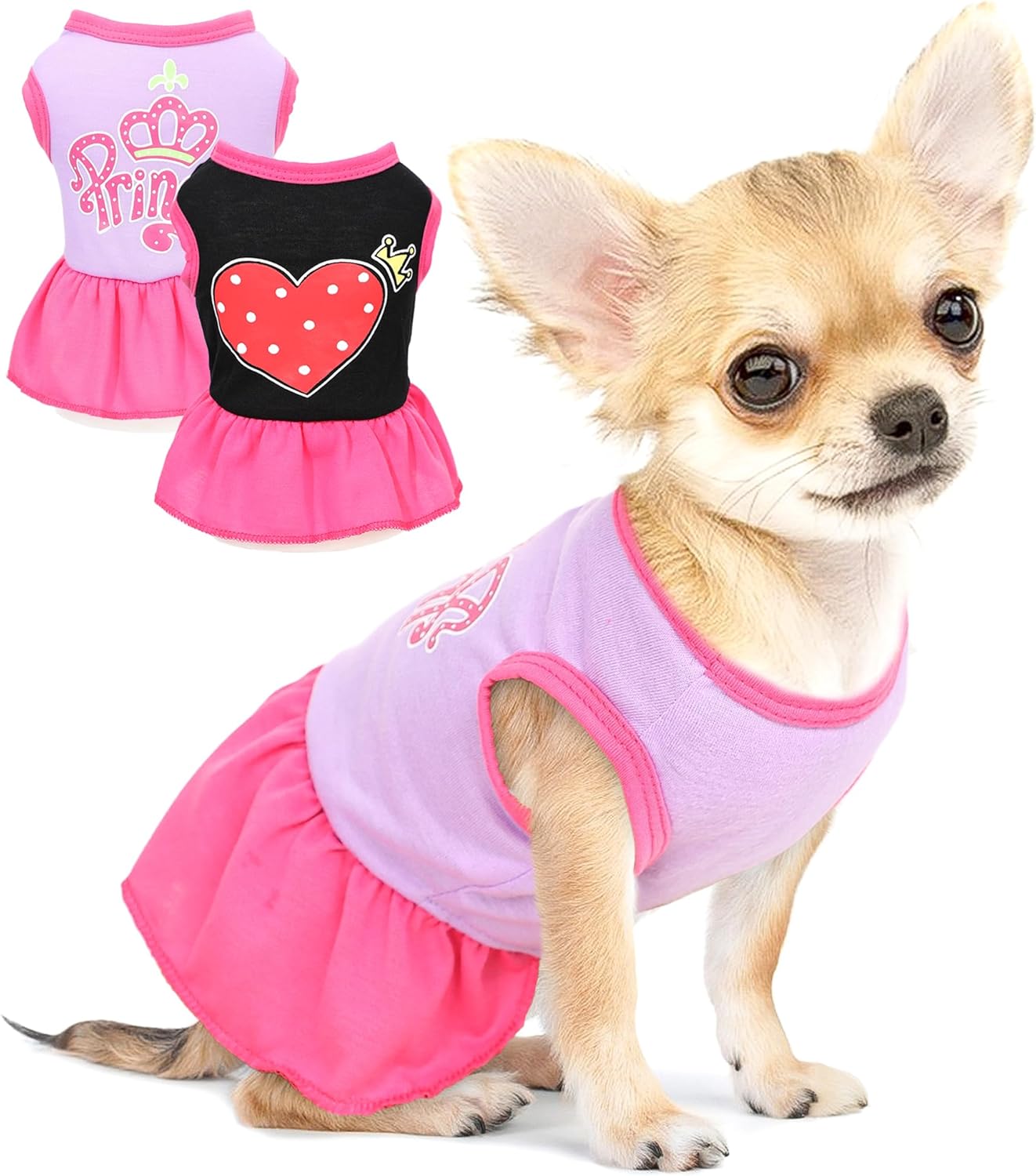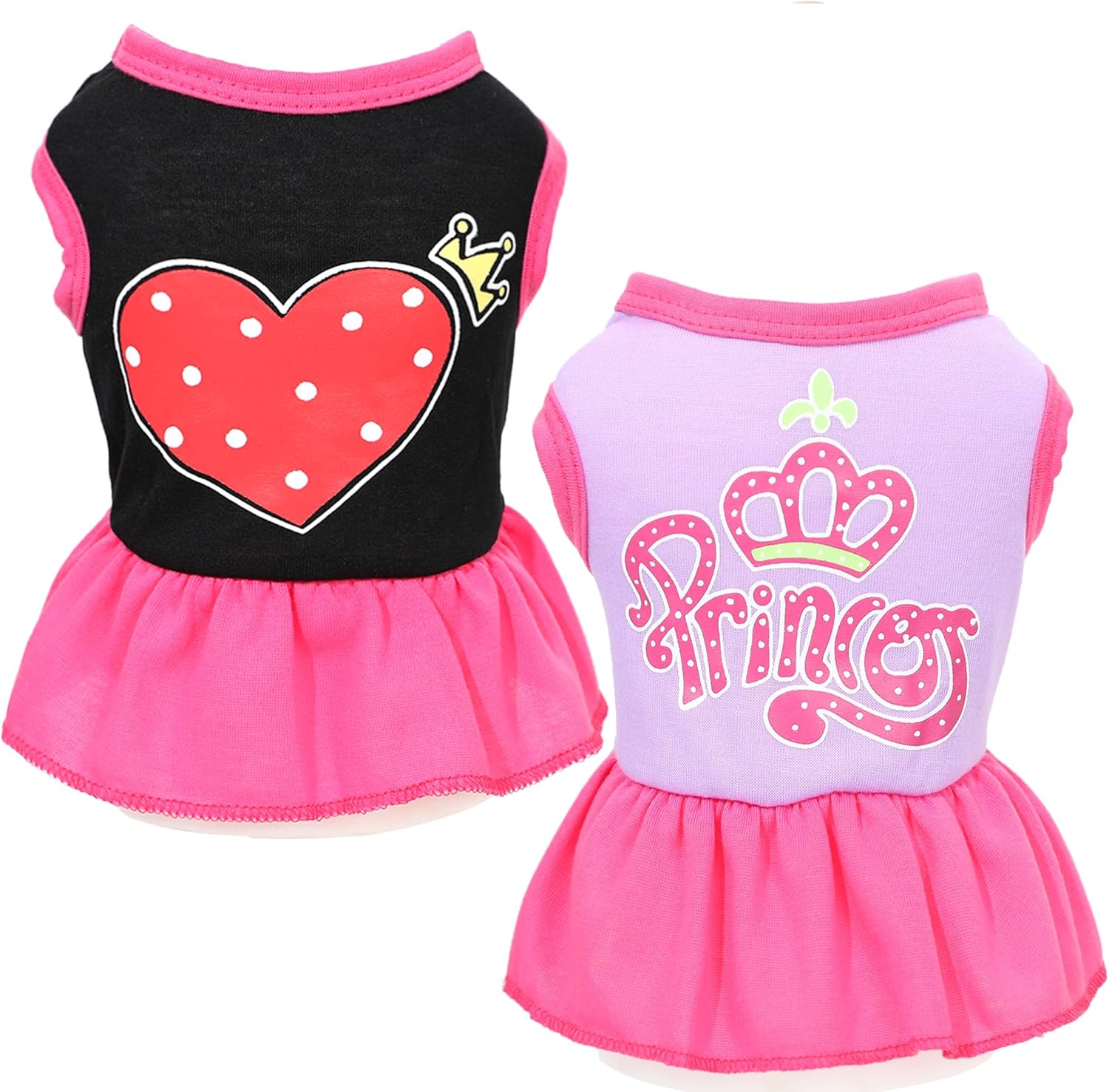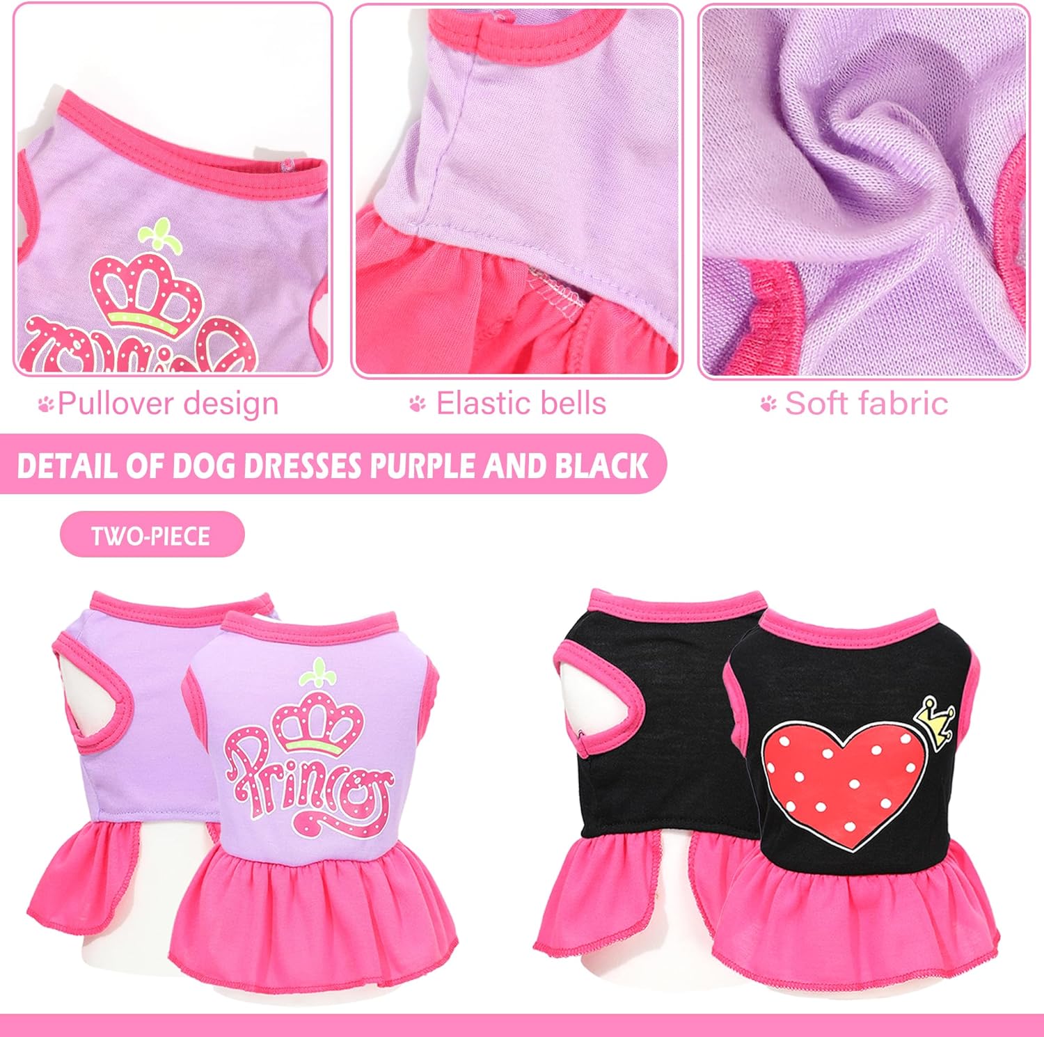 2 Pieces Dog Clothes Princess Love Pattern Spring Summer Sundress Shirts Cute Puppy Clothes Dresses for Small Dogs Girl Pet Cats Outfits Clothing, Black,Purple, X-Small