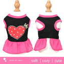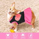 Adorable 2-Piece Pet Dog Dress Set – This set includes two stylish dog dresses in black and purple, featuring unique patterns: polka dot hearts and polka dot strawberries with princess words, cute and fashion, it's perfect for daily wear, special occasions, photoshoots, holiday, mother's day, beach, travel.