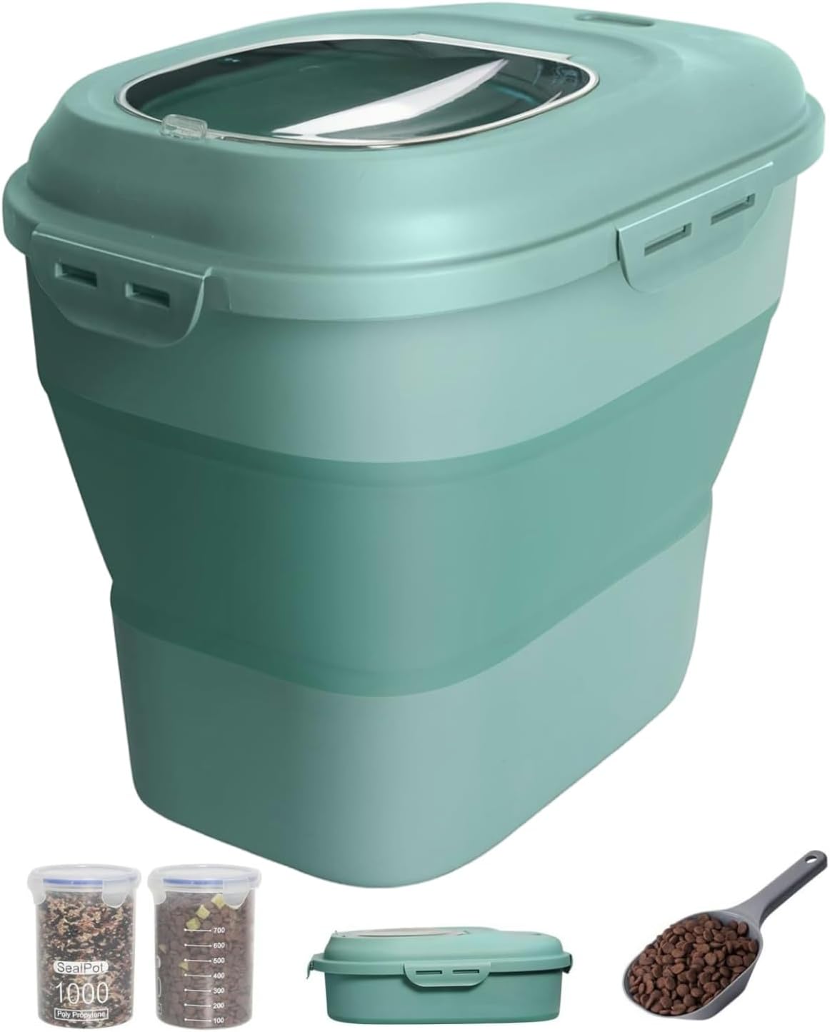 20-23 Lbs Dog Food Storage Container, Collapsible Dog Food Container with Transparent Airtight Lid,Multifunctional Pet Food Storage Container for Dog Cat,Rice,Flour,Pet Food Scoop and Dog Bowl