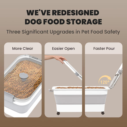 • Superior Sealing for Freshness: Our pet food container with lid airtight is designed with a double airtight seal and 4 side locking lids, ensures your pet's food stays fresh longer, free from moisture and pests.
