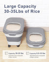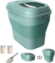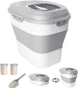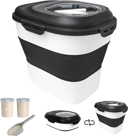 - Space Save & Extra-large Size: This rice container can hold 20-30 lbs of rice or 20-23 lbs of pet food.Unfolded size:16.54"L x 10.15"W x 12"H, suitable for storing 35 pounds of rice or 23 pounds of dog food.Folded size:16.54"L x 10.15"W x 5.5"H,can hold about 10 pounds rice or 6.5 pounds of dog or cat food