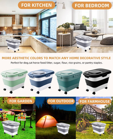 - Built-in Detachable Wheels: Tired of lugging heavy bags of pet food around? Our dog food container is thoughtfully designed with 4 detachable rolling wheels, making it a breeze to move from one place to another