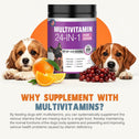 - Dog multivitamins chewable for skin & coat : Dog multivitamin is rich in Omega-3 fatty acids and vitamin E,which can relieve skin allergies,dryness,itching and other problems.Multivitamin for dogs nourishes skin follicles.Long-term consumption of dog vitamins multivitamin can make dog hair stronger and smoother,and reduce coat loss.The COQ10 in dog multivitamin chewable can resist oxidation and delay cell aging.Dogs with skin injuries can eat dog vitamins and supplements to promote wound healing