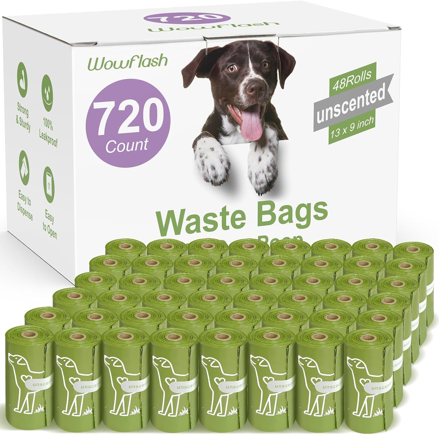 - 【Large 13” x 9” Bags】: Wowflash waste bags for dog poop features the size of 13” x 9”, suitable for all kinds of dogs and fit the standard dispenser.