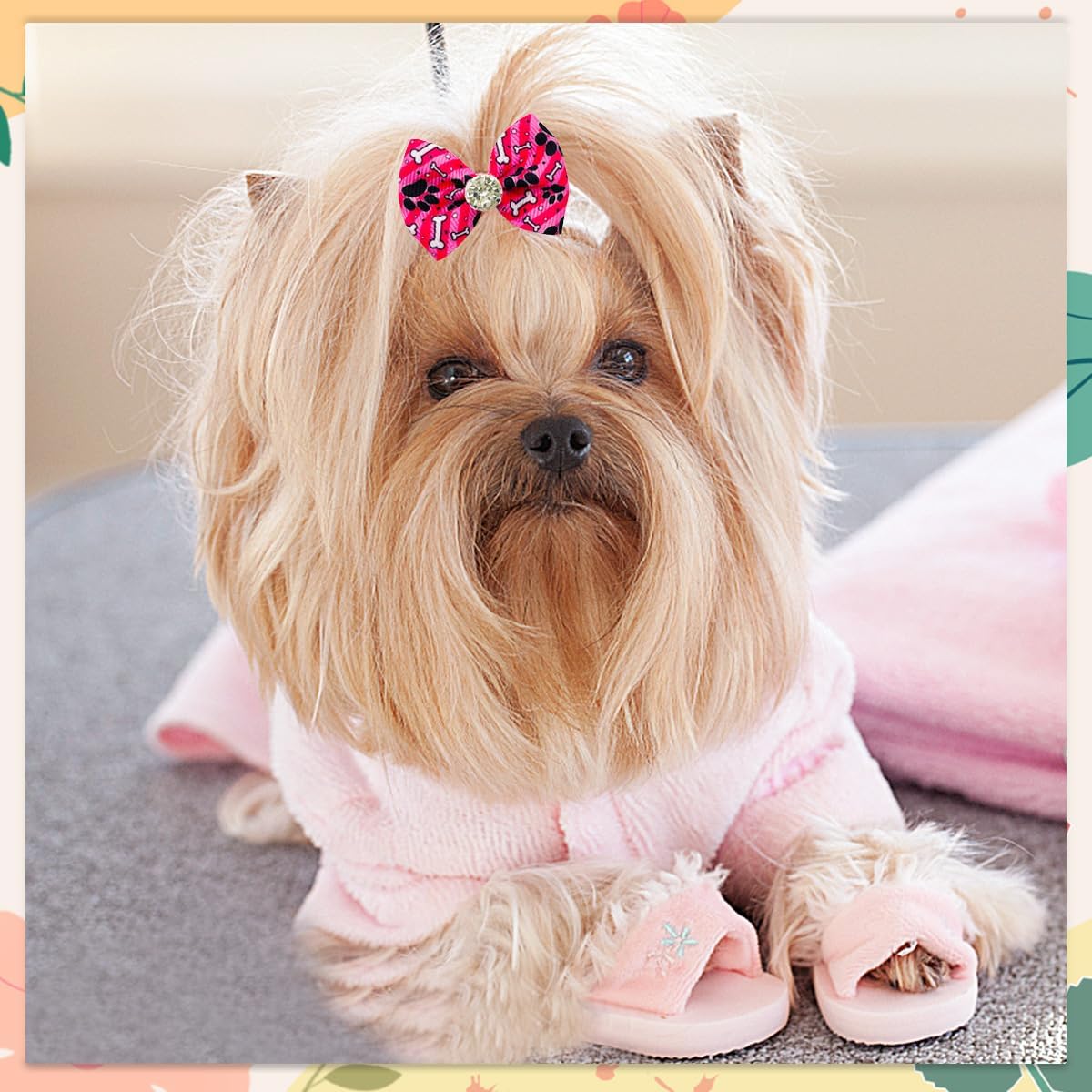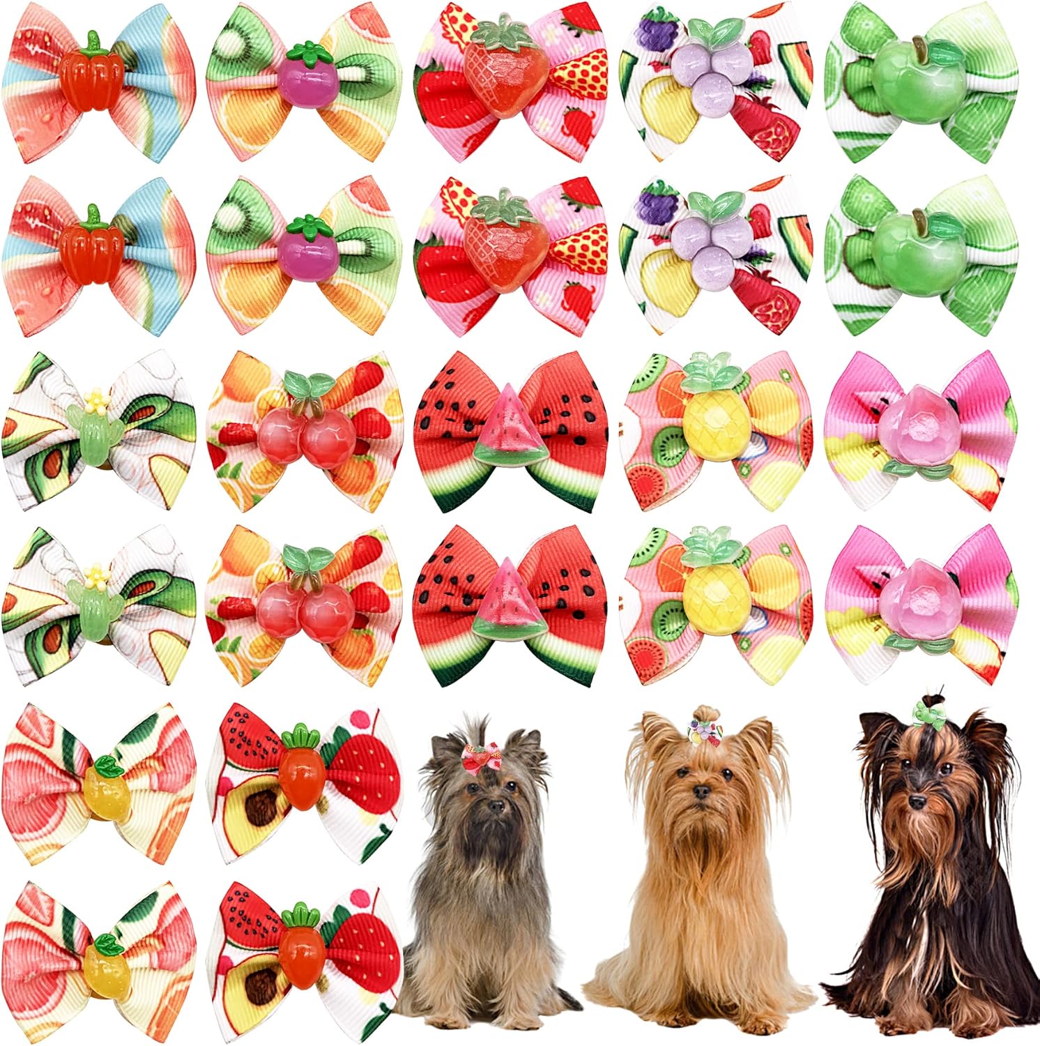 - Dog Hair Bows with Rubber Band :These dog hair accessories adopt various animal element,such as paw bone heart and other patterns, adding a lot cute atmosphere for you and your pet