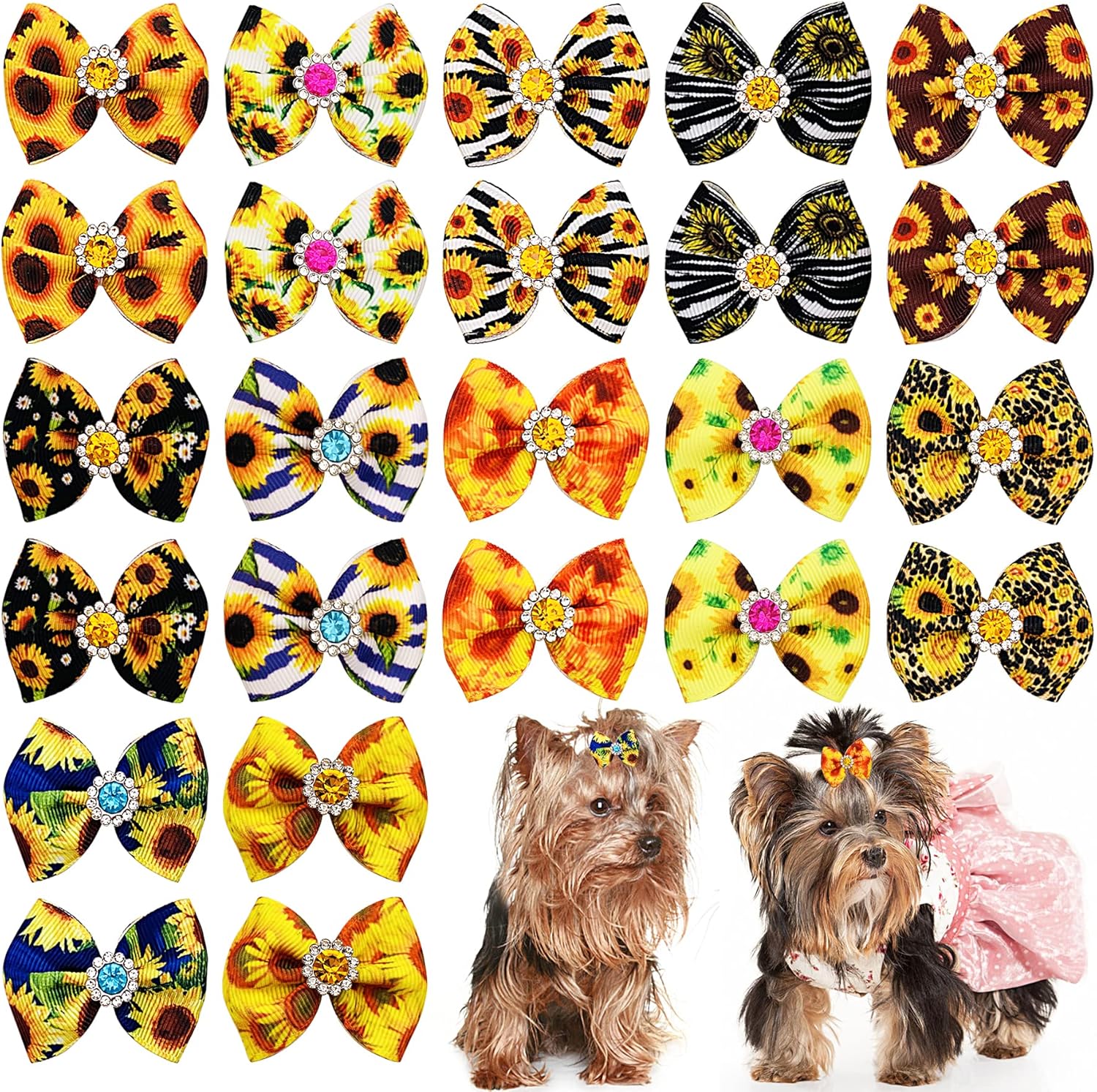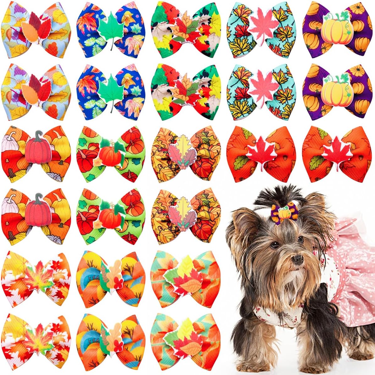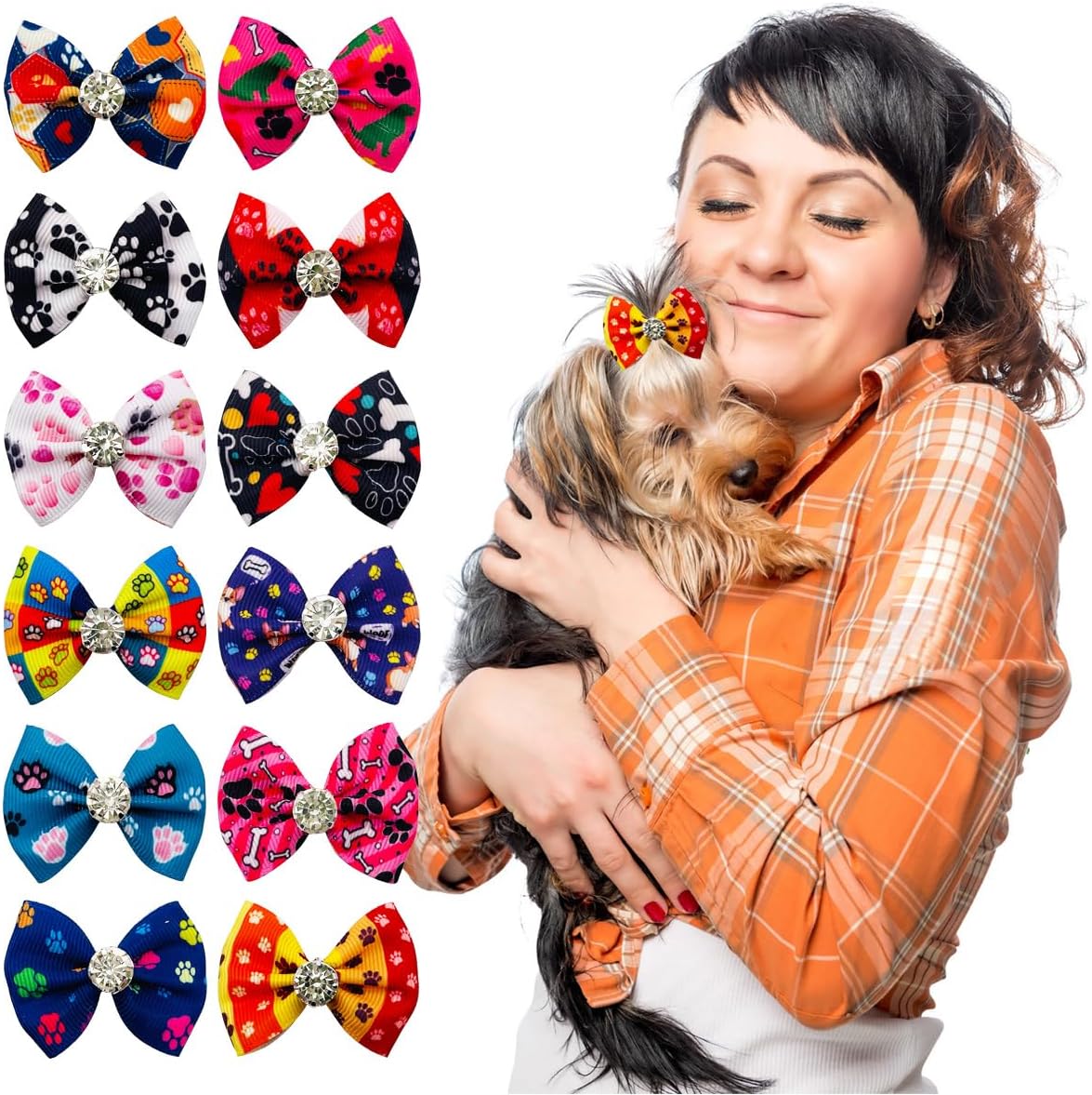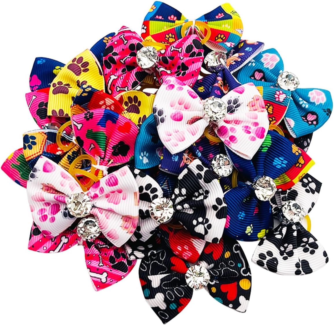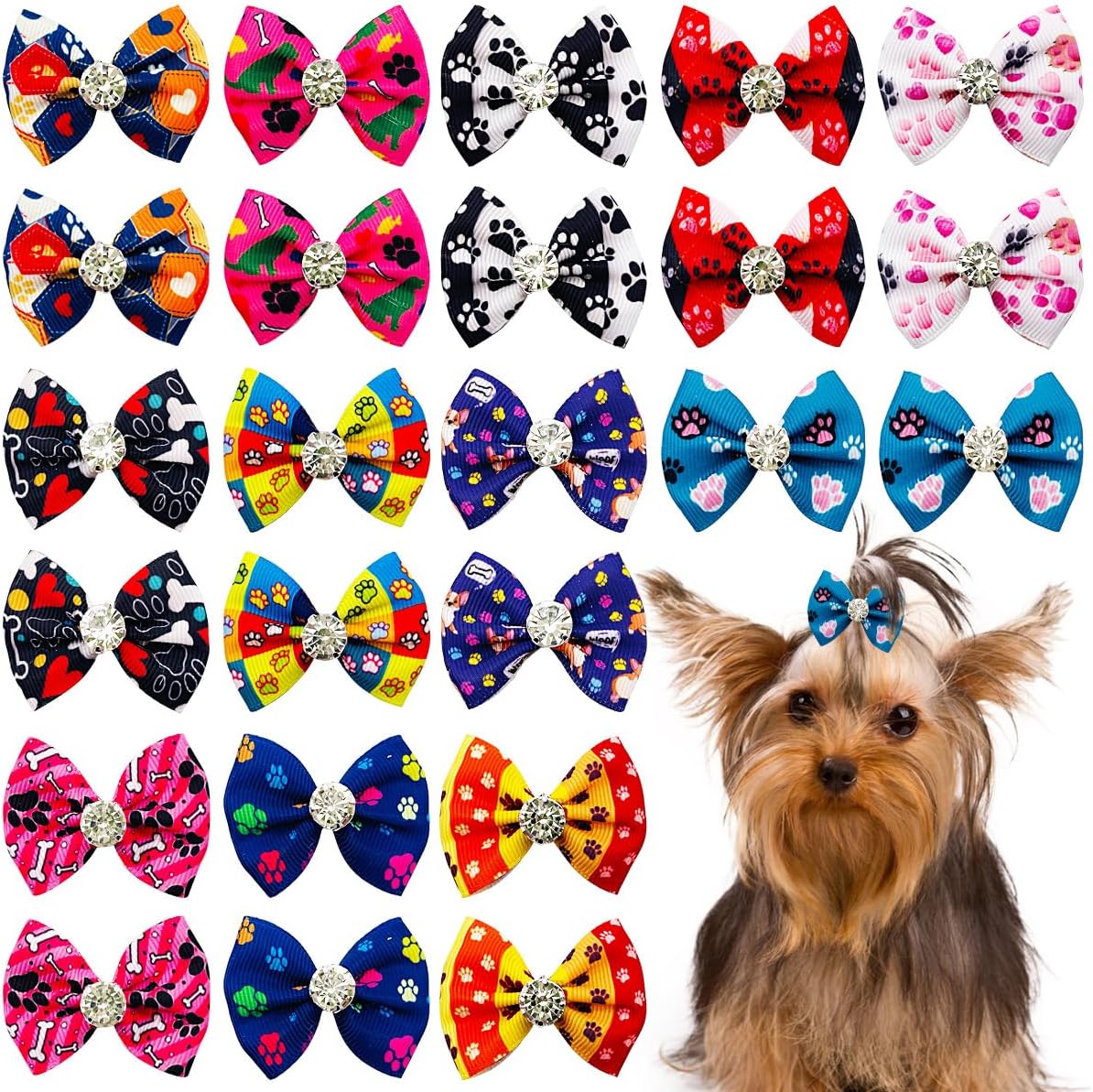 - Dog Hair Bows Package: You will get 24pcs/12pairs in pack, Paw Bone heart print as picture