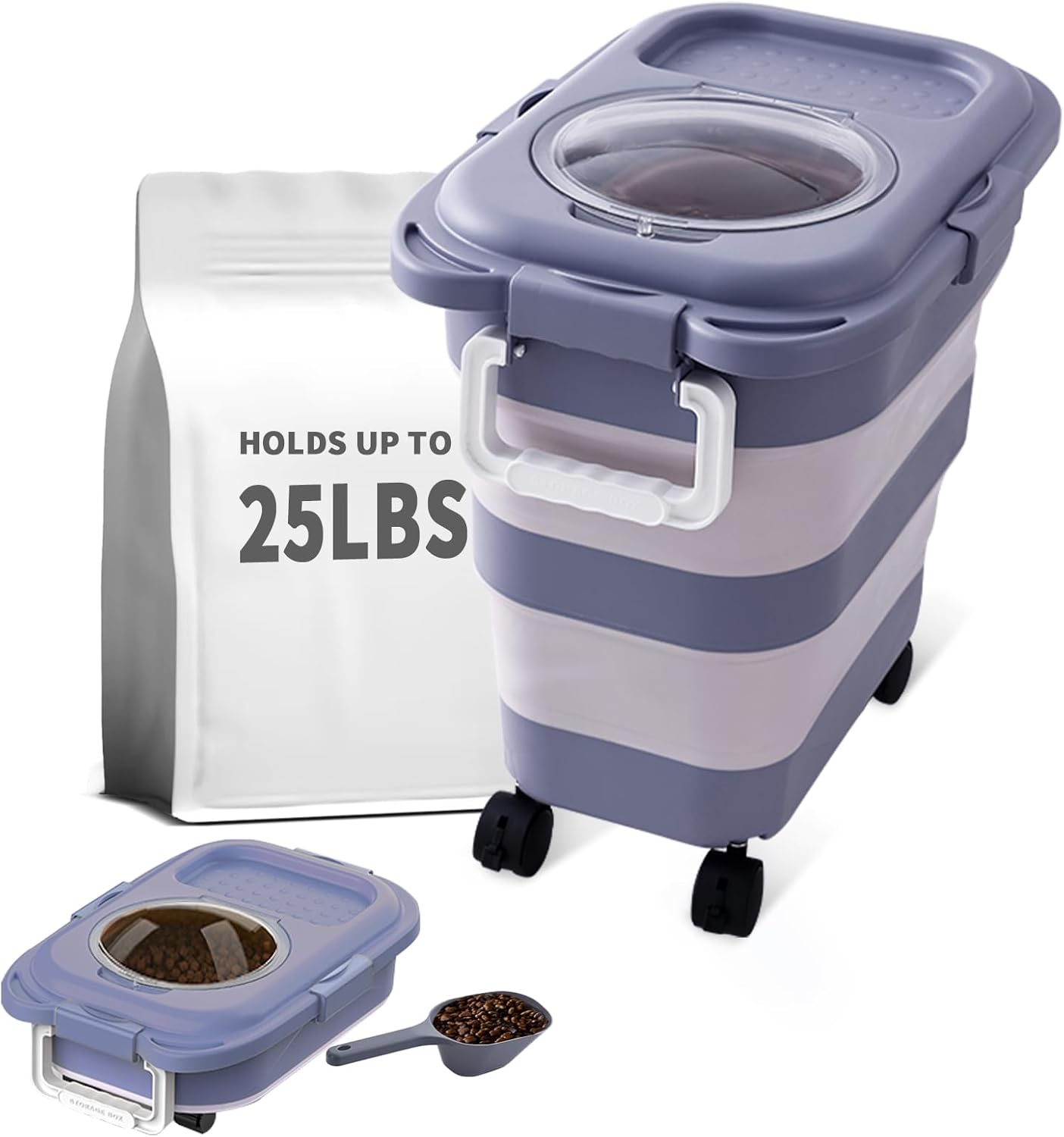 - 25 LBS PLASTIC & SILICONE DOG FOOD STORAGE CONTAINER