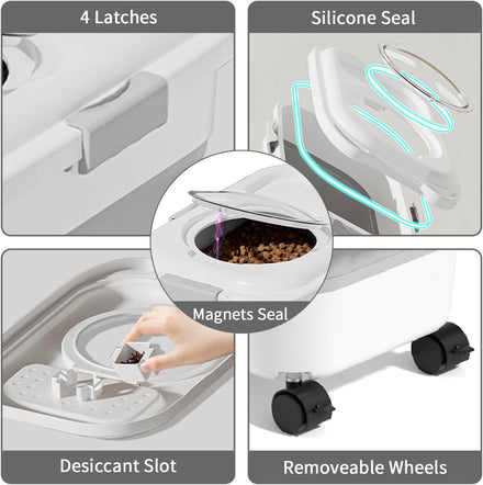- SUPERIOR SEALING: NXIZOLI airtight dog food storage container uses silicone ring sealing to keep pet food fresh. The slot can store desiccant, garlic, and aniseed, effectively keeping moisture away