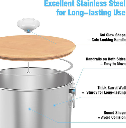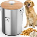 - Sturdy Materials Ensure Long-lasting Use and Protect Health: The body of the dog food storage bin is made of food-grade stainless steel, ensuring the well-being of your breeds. Its thick walled construction not only offers exceptional sturdiness but also makes it highly resistant to deformation. Compared with plastic models, it is more durable and is a long-lasting choice to accompany you and your pets.