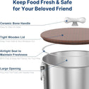 - Keep Food Fresh with Airtight Seal: The airtight wooden lid of our pet food storage containers that locks out moisture, air, and light, preserving the flavors and nutrients of your pet’s food. Say goodbye to stale kibble! The seamless stainless steel body complements the lid, creating a perfect seal that ensures your pet’s food stays fresh and crunchy for longer.