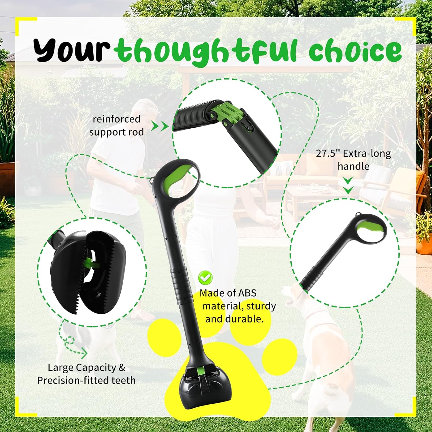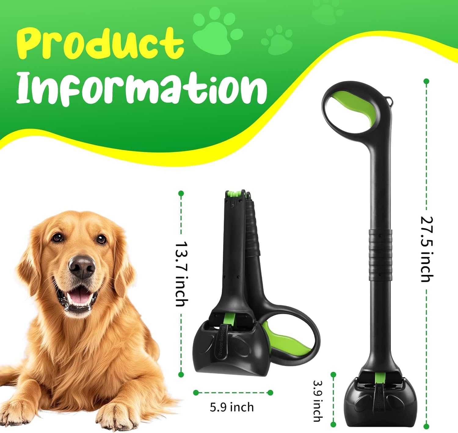 - 【Extra-Long handle, no bending required】Our dog pooper scooper features an extra-long 27.5" handle, letting you easily clean up after your pet without bending over or squatting