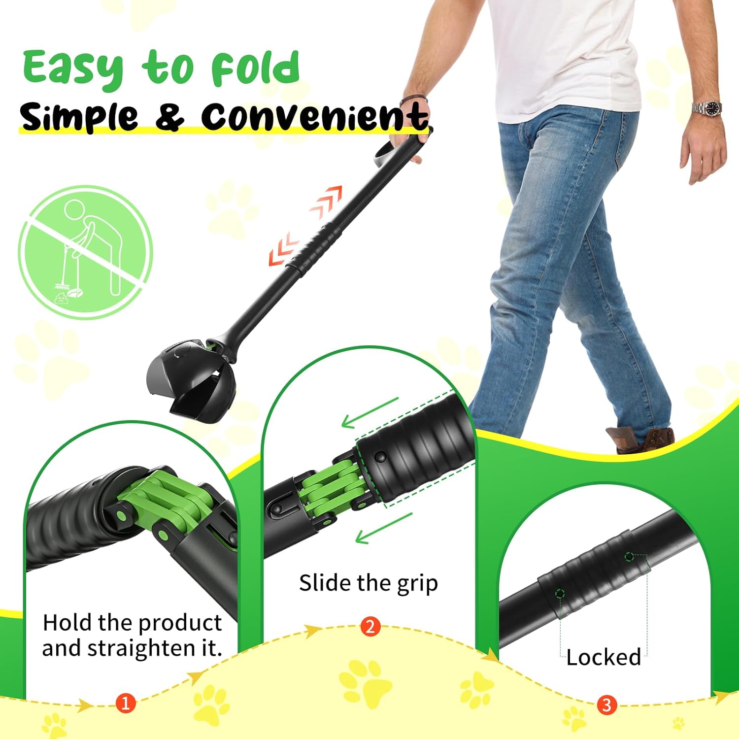 - 【Foldable design, lightweight & portable】Our dog poop scoop features a foldable design. Just slide the lock to secure it for use, and unlock and fold it for compact storage when done. This makes it convenient for use both indoors and in the yard