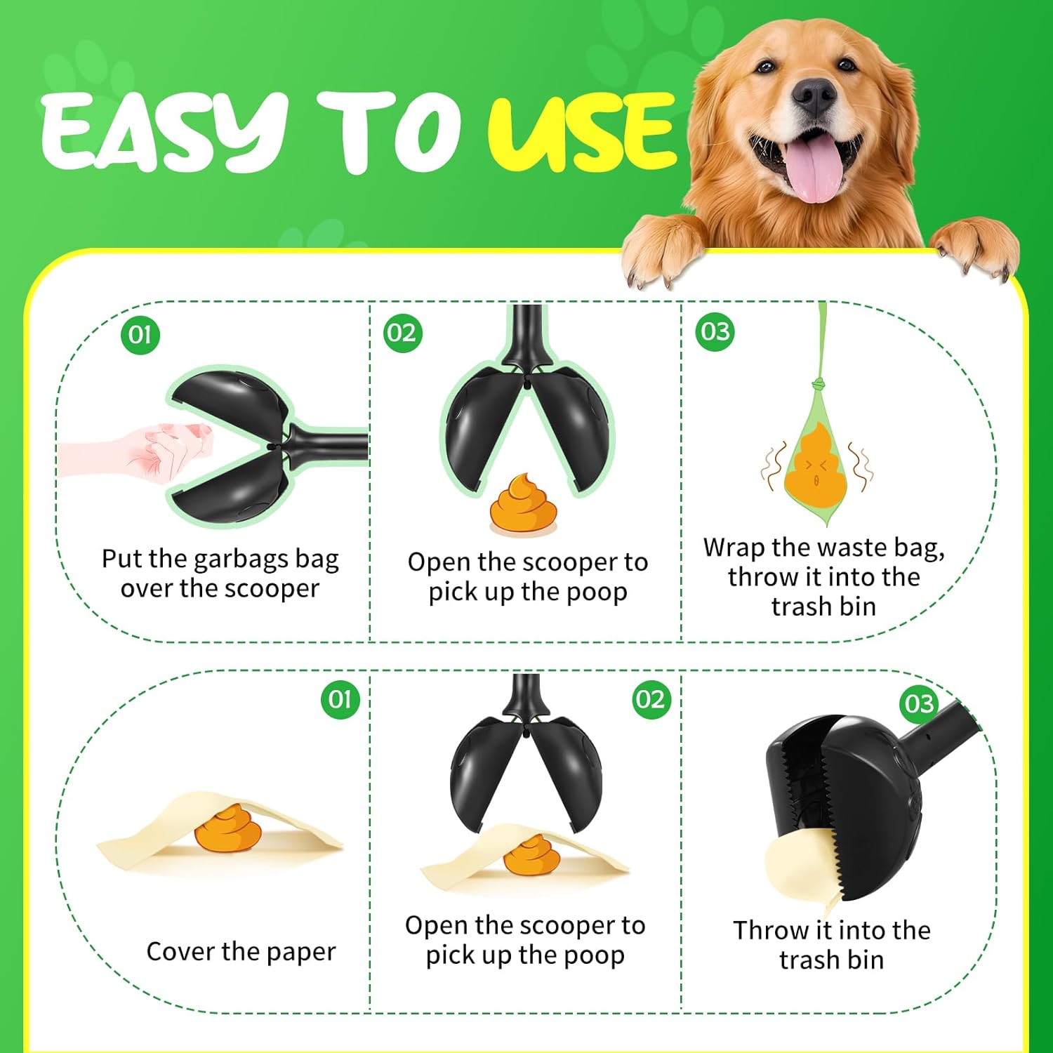 - 【Lightweight & durable, resistant to damage】Our poop scooper for dogs is made from high-strength ABS plastic, making it lightweight and durable. It withstands multiple drops without damage, perfect for use at home or on the go