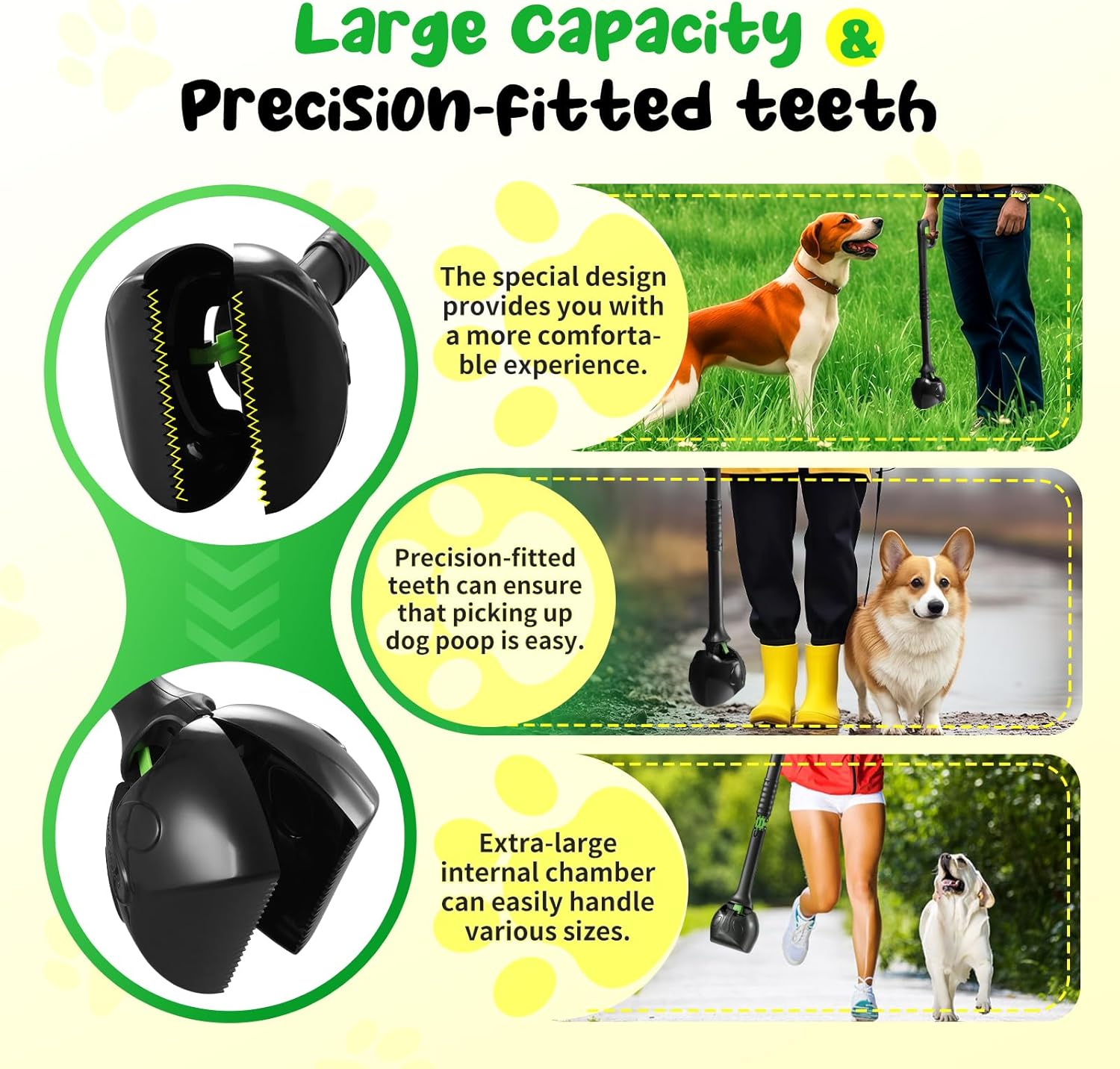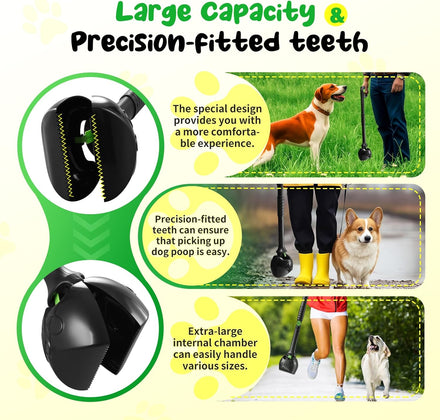 - 【Easy to use in any setting】Our dog poop scooper has a large-capacity chamber and densely arranged teeth, ensuring efficient pickup of waste from dogs of all sizes, whether in the yard, on sand, or gravel