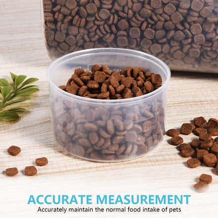 - Accurate Measurement: Don't worry about feeding your pet too much or again, the dog food container is equipped with a measuring cup, so you can keep your pet's normal food intake precisely