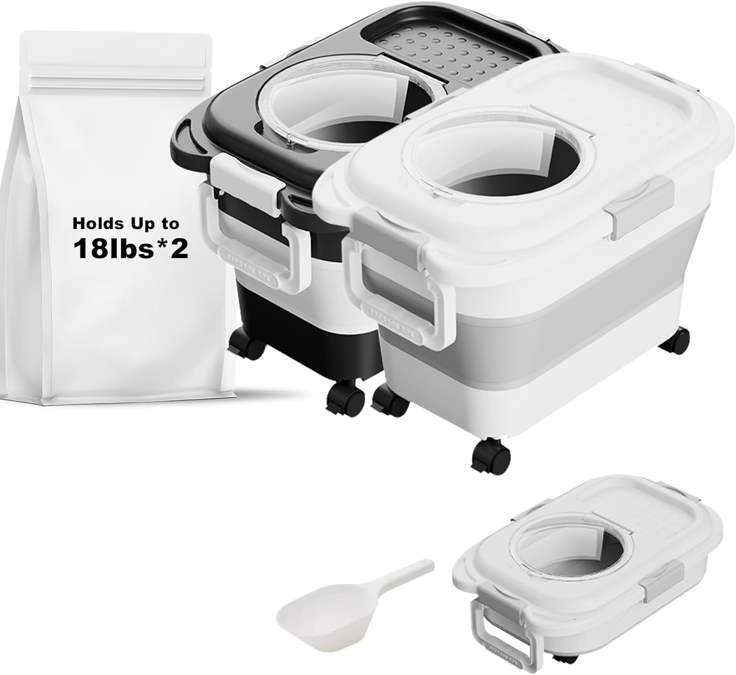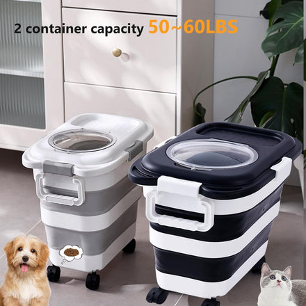 - 2*25BL(50BL) 𝐂𝐚𝐩𝐚𝐜𝐢𝐭𝐲:Our food storage bin can be sealed to store 2*(25-30)BL dry dog/cat/animal food.