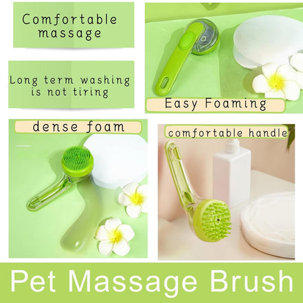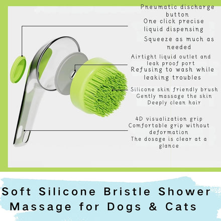 - Dog Bath Brush with Soap and Shampoo Dispenser: This innovative dog bath scrubber has a built-in soap dispenser—easy to refill and squeeze for rich lather.
