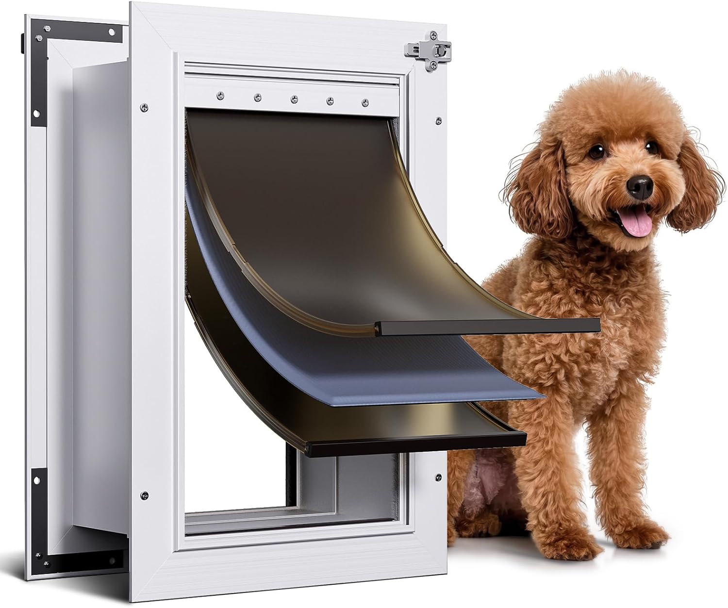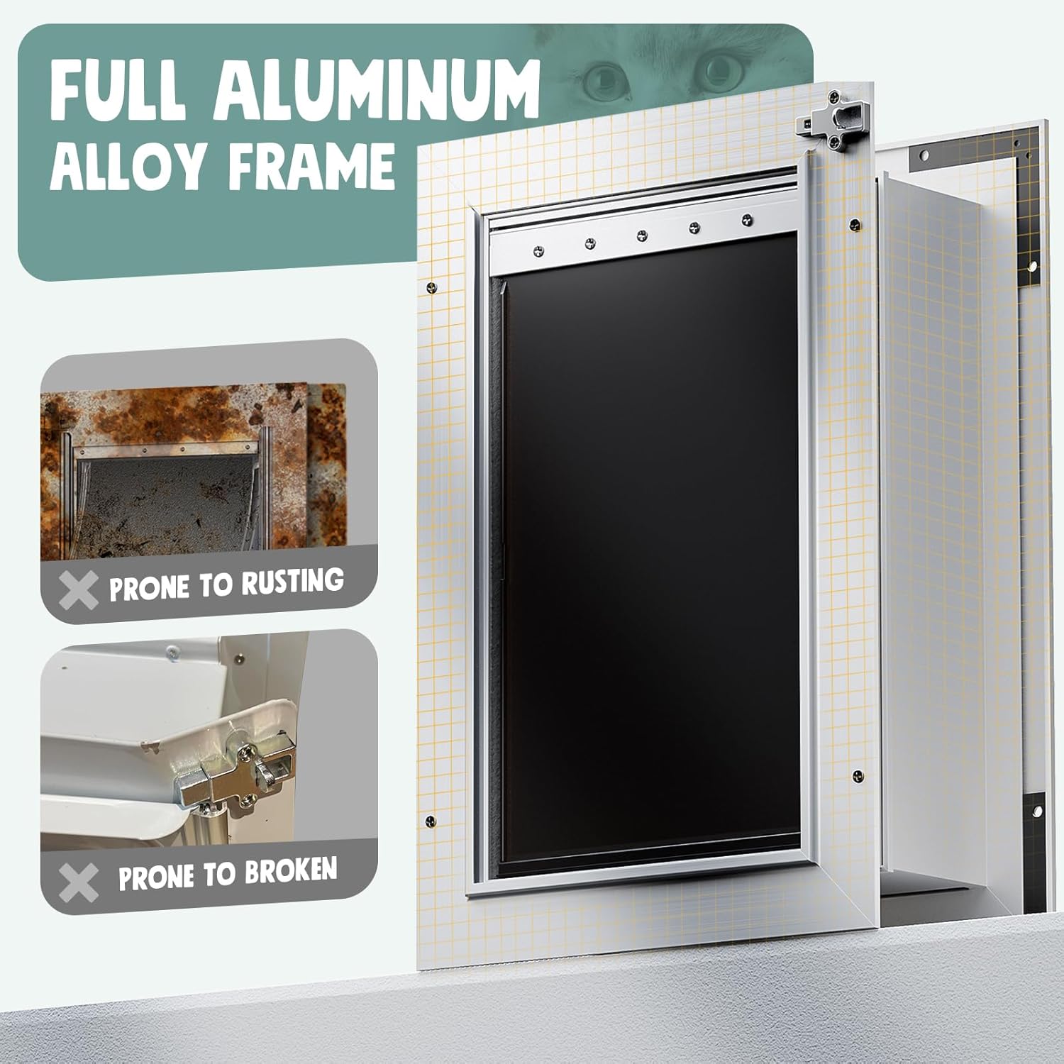 - All Aluminum Dog Door: The whole dog door is made of all high quality aluminum alloy, reinforced by high-end welding process, which is more sturdy and not easy to deform and rust.85% more durable than traditional iron and non-aluminum dog doors, extending the life of the dog door and reducing the frequency of replacement and the complexity of repetitive installation processes