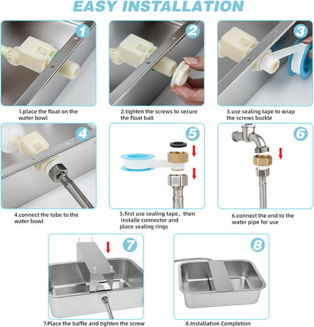 - Easy installation: Auto fill dog water bowl complete fittings, no professional tools or skills are needed, easy to install and use; Equipped with 1/2" hoses and 1/2" to 3/4" copper adapter is designed to fit faucets with GHT 3/4" threads, also comes with 4 anti slip sticker to prevent pet water dispenser from sliding on smooth surfaces; Please check thread compatibility before order
