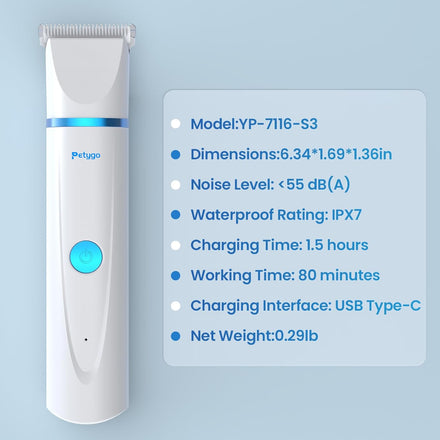 - 【All-In-One Pet Clipper Kit】 - Petygo Pet Trimmer Kit comes with 2 interchangeable trimmer heads and 1 nail grinder head, a USB charging cable, and a small brush.ideal for dogs, cats, and other furry pets. Perfect for full-body grooming and nail trimming.