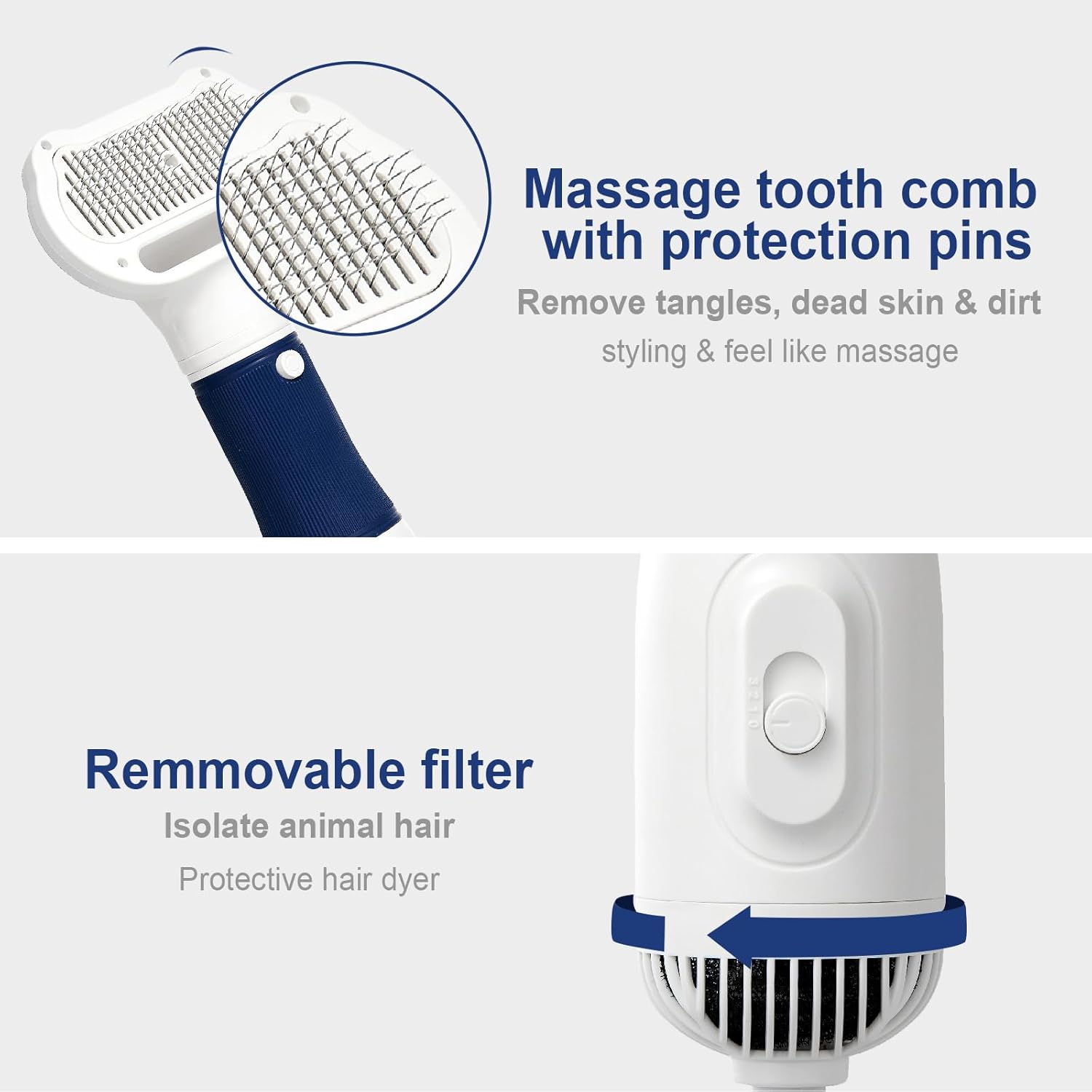 - 【Dryer & Brush in One】This 3-in-1 dog hair dryer is combined hair dryer with hair comb brush, it can make much easier to dry your pet, perfect for use after baths, rainy walks, or during cold weather, it provides warmth and comfort while grooming your dog.