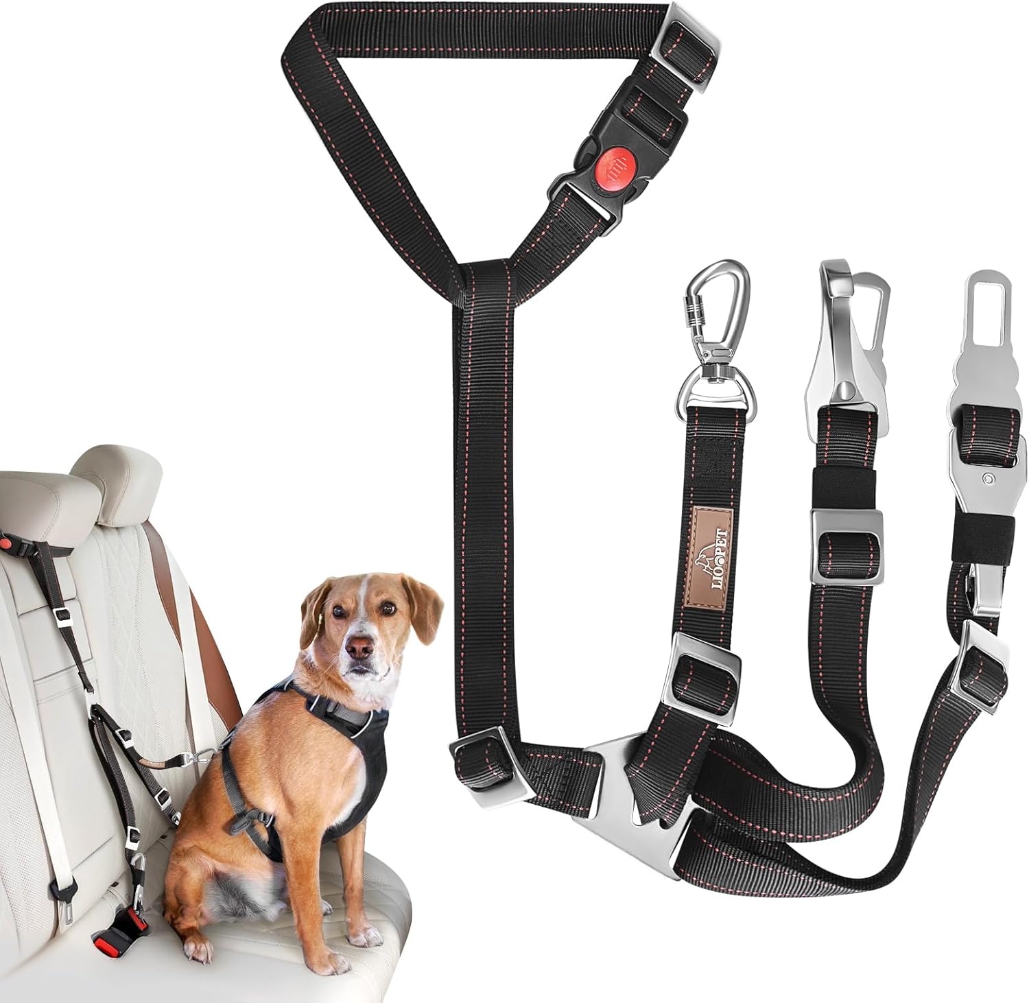 - 【Versatile Safety belt】- This leash serves 3 purposes with a single rope. The lower part features multiple attachment ropes, which can be used as a safety leash for multiple pets in the car and as a lead rope for walking multiple pets outdoors.