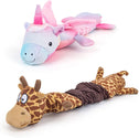 3-in-1 Squeaky Dog Toy for Chewer (Squeaker, Crinkle Paper & Elastic Band), Durable Interactive Puppy Plush Stuffed Chew Toy for Boredom, Tug of-War, for Small Medium Large Breed (Giraffe)